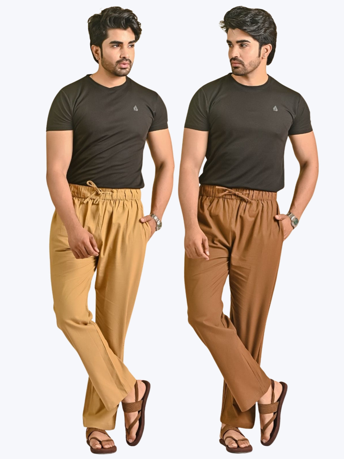 Beige And Brown Loose Fit Cotton Pajama Combo