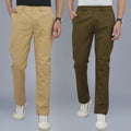 Pack Of 2 Beige And Mehendi Green Airy Linen Summer Cool Cotton Comfort Pants For Men
