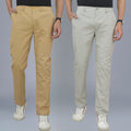 Pack Of 2 Beige And Melange Grey Airy Linen Summer Cool Cotton Comfort Pants For Men
