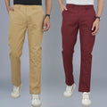 Pack Of 2 Beige And Wine Airy Linen Summer Cool Cotton Comfort Pants For Men