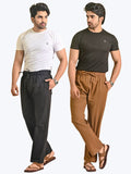 Designed for all-day comfort and relaxation, our men's loose-fitting pajama pants are a great way to upgrade your sleepwear. These full-length pajama pants, which are made of a soft and breathable cotton blend, are ideal for sleeping or relaxing. With an adjustable drawstring and a fully elasticated waistband, they provide a snug yet adaptable fit. With two side pockets and a patch pocket on the back hip, this practical yet comfortable bag is perfect for holding small necessities close at hand. These cotton-blend pajama pants offer the ideal balance of ease, style, and durability, whether you're sleeping through the night or having a relaxing weekend morning. A wardrobe essential for all men.
