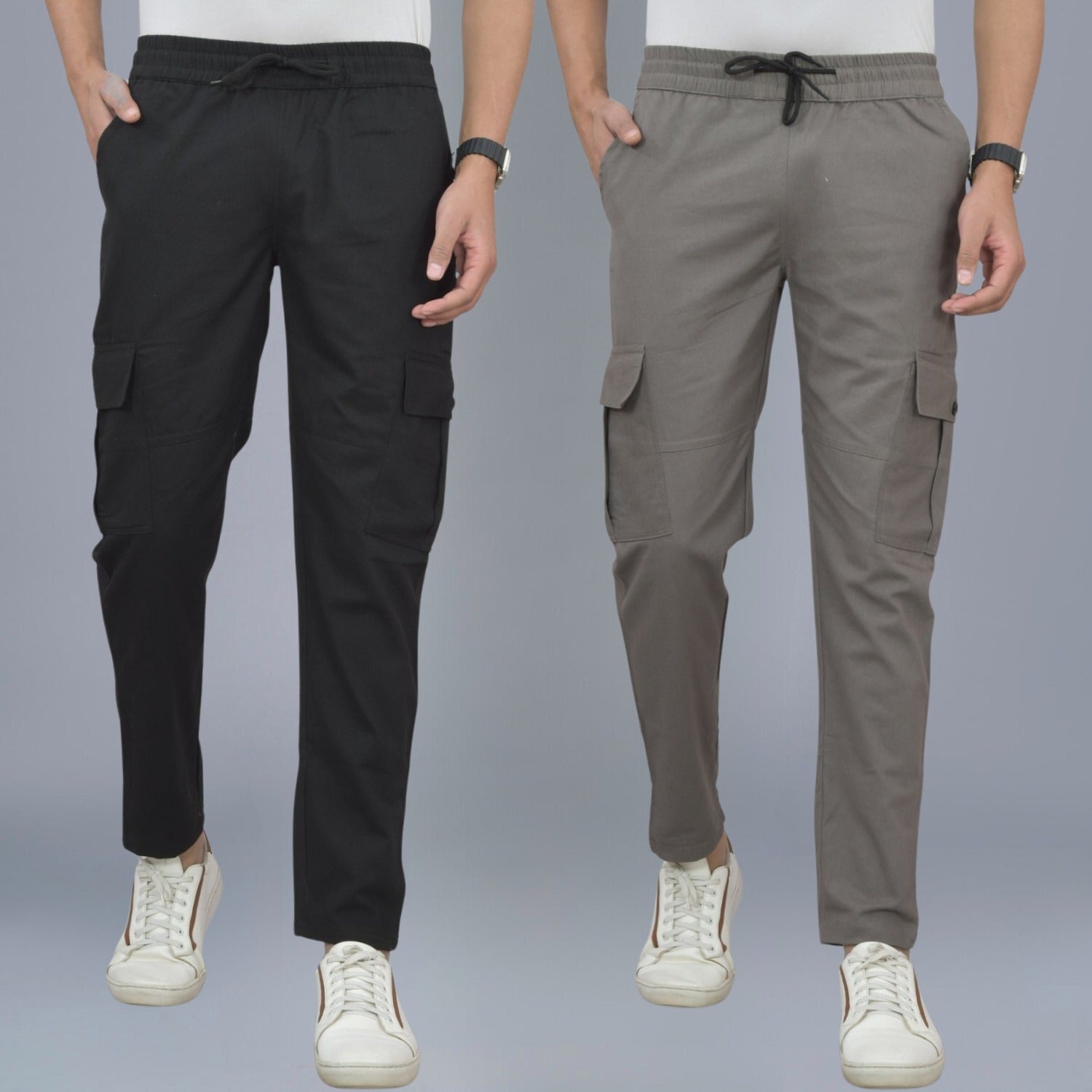 Pack Of 2 Mens Black And Grey Twill Straight Cargo Pants Combo