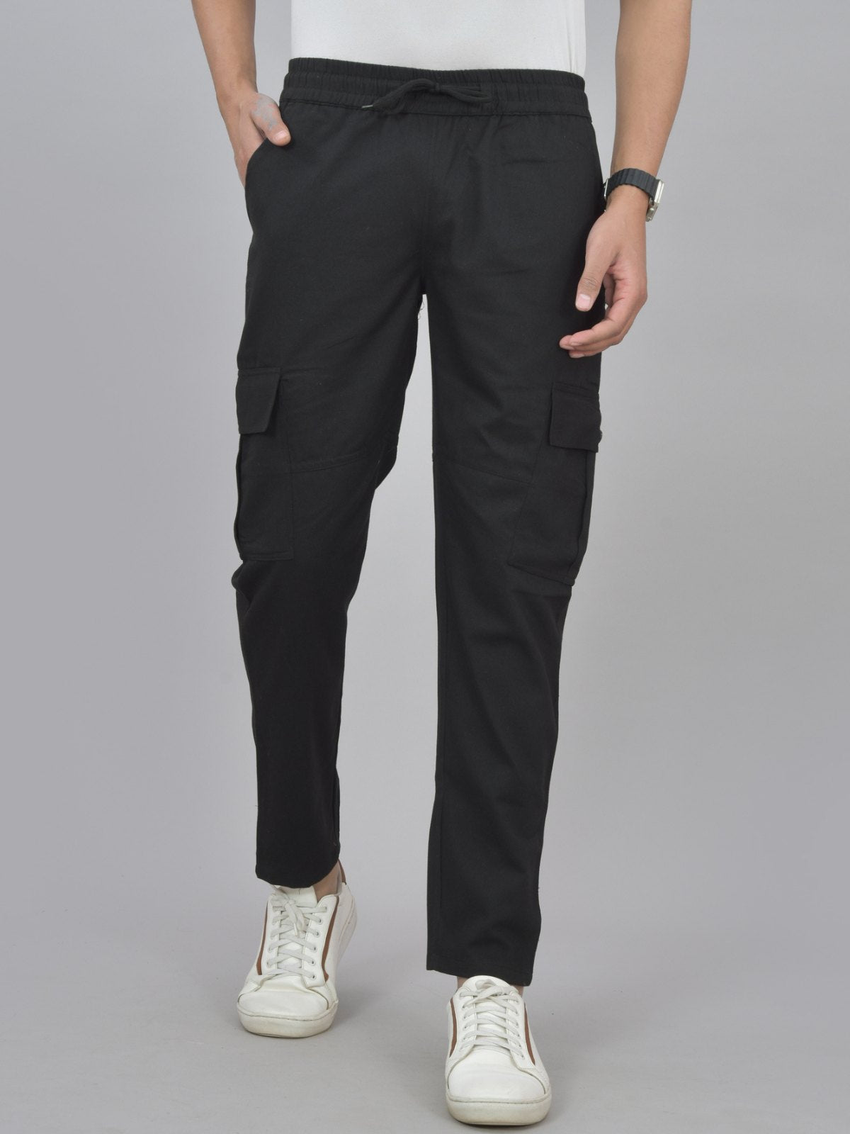 Experience the perfect fusion of both style and convenience with our new mens twill straight fit cargo pants. With a drawstring closure with fully elastic waistline, these pants provide unmatched flexibility and a customised fit. Crafted from premium twill fabric, these pants offer exceptional durability and a luxurious feel. You'll always have enough room to bring your necessities with you thanks to the five pockets for maximum storage capacity. 2 side cargo flap pockets, 2 slash pockets, 1 back pockets for easy-access storage. Great for safely storing your cell-phone, tools, wallet, and other personal items or gadgets. These stylish cargo trousers, which come in a variety of appealing colours, are the ideal complement to the wardrobe of any contemporary man. With our adaptable and stylish cargo pants, you can easily elevate your everyday ensemble.