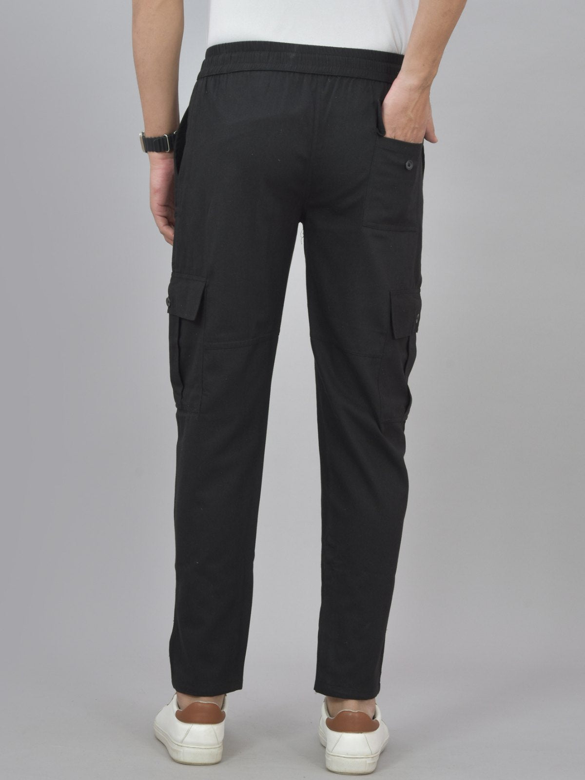 Experience the perfect fusion of both style and convenience with our new mens twill straight fit cargo pants. With a drawstring closure with fully elastic waistline, these pants provide unmatched flexibility and a customised fit. Crafted from premium twill fabric, these pants offer exceptional durability and a luxurious feel. You'll always have enough room to bring your necessities with you thanks to the five pockets for maximum storage capacity. 2 side cargo flap pockets, 2 slash pockets, 1 back pockets for easy-access storage. Great for safely storing your cell-phone, tools, wallet, and other personal items or gadgets. These stylish cargo trousers, which come in a variety of appealing colours, are the ideal complement to the wardrobe of any contemporary man. With our adaptable and stylish cargo pants, you can easily elevate your everyday ensemble.