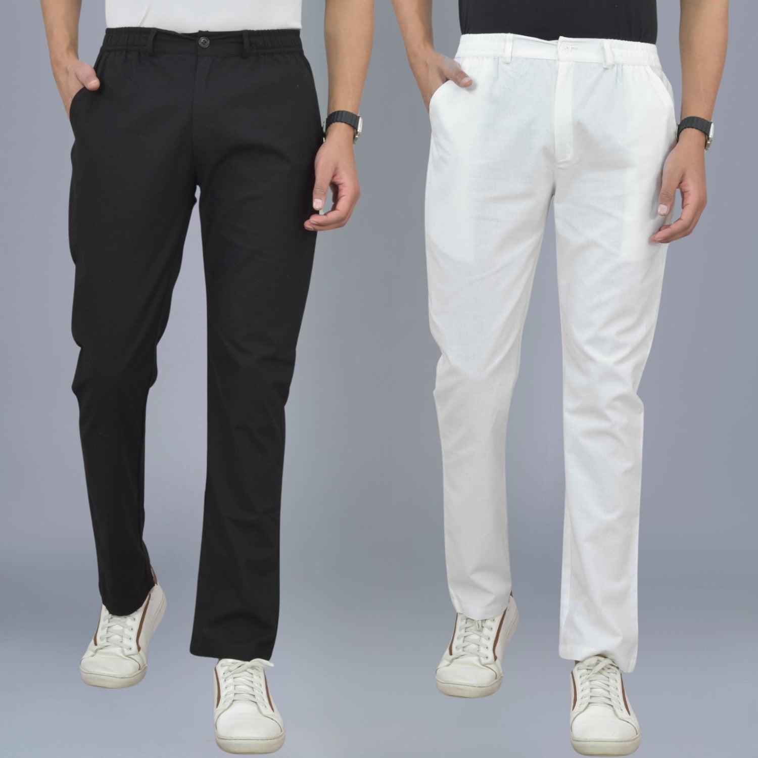 Pack Of 2 Black And White Airy Linen Summer Cool Cotton Comfort Pants For Men