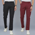 Pack Of 2 Black And Wine Airy Linen Summer Cool Cotton Comfort Pants For Men