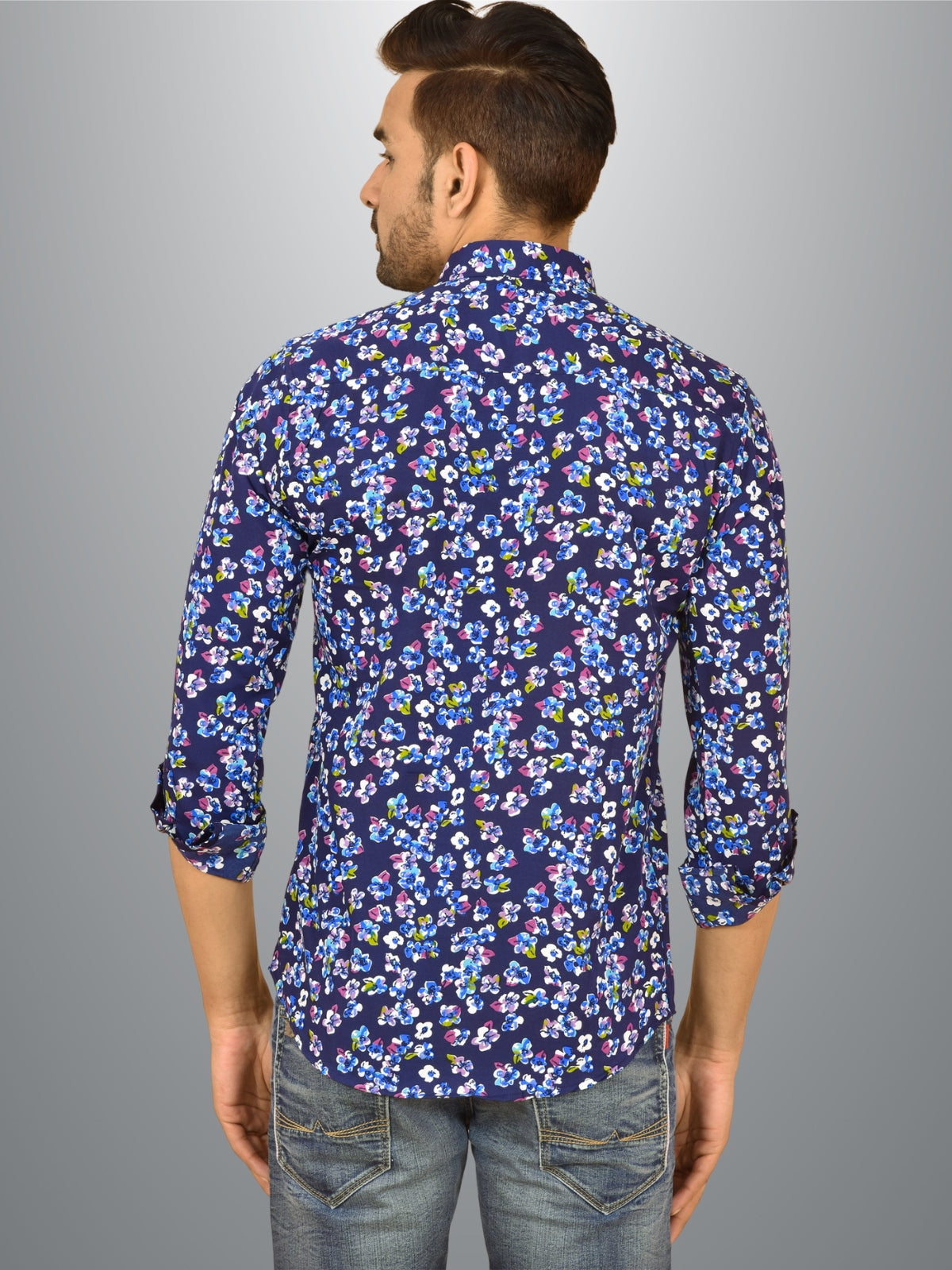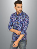 Mens Blue Flower Printed Crepe Fabric Shirt