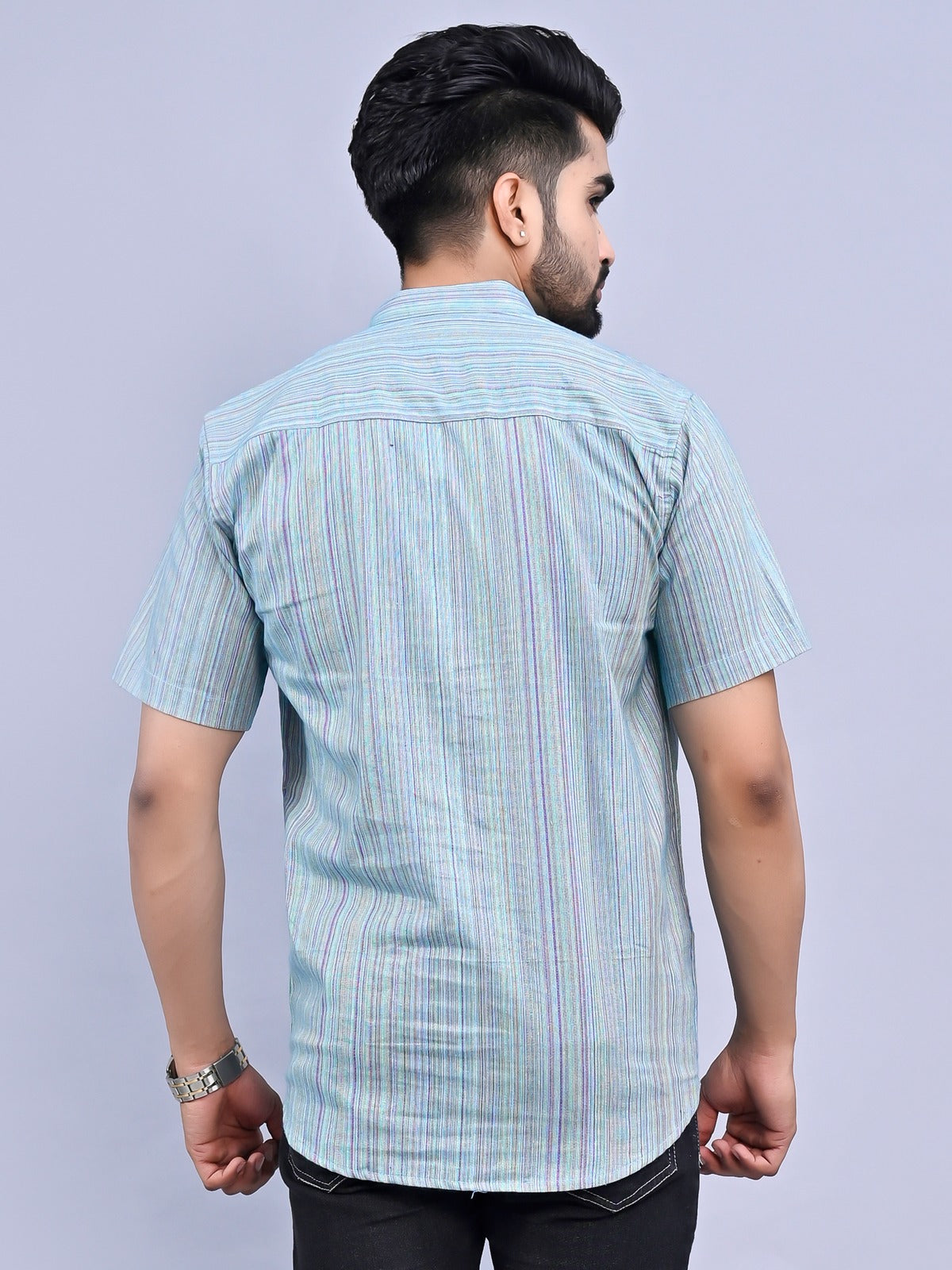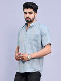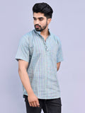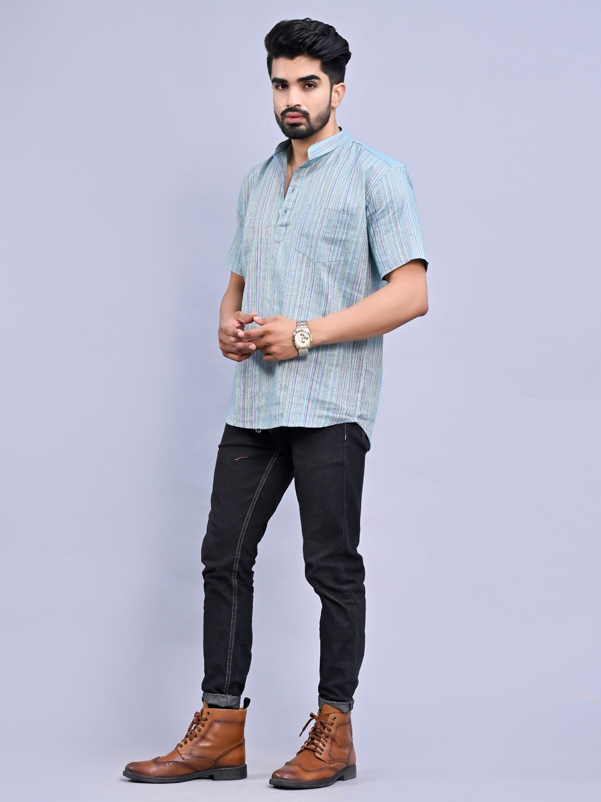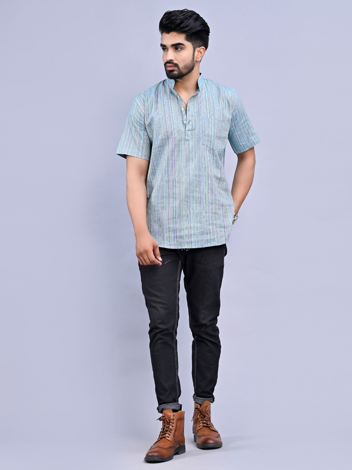 Regular Fit Blue Multi Stripes Cotton Short Kurta