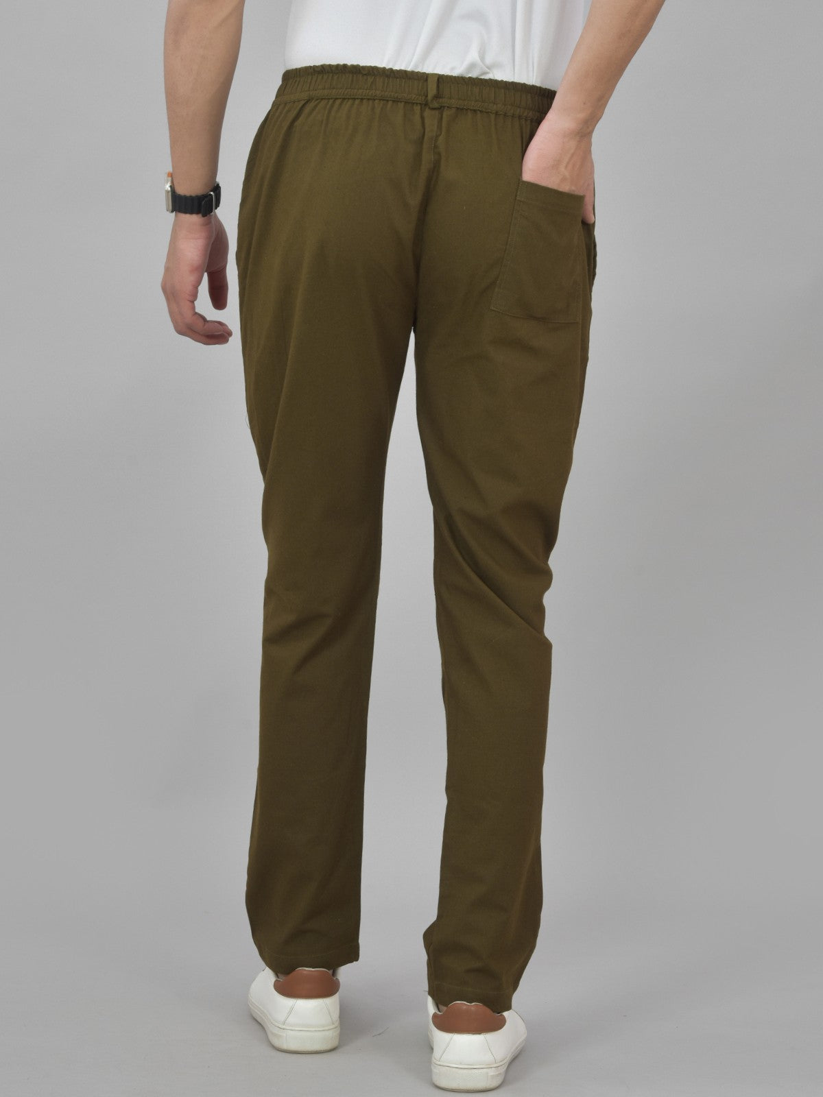 Pack Of 2 Brown And Mehendi Green Airy Linen Summer Cool Cotton Comfort Pants For Men