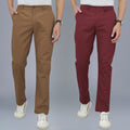 Pack Of 2 Brown And Wine Airy Linen Summer Cool Cotton Comfort Pants For Men