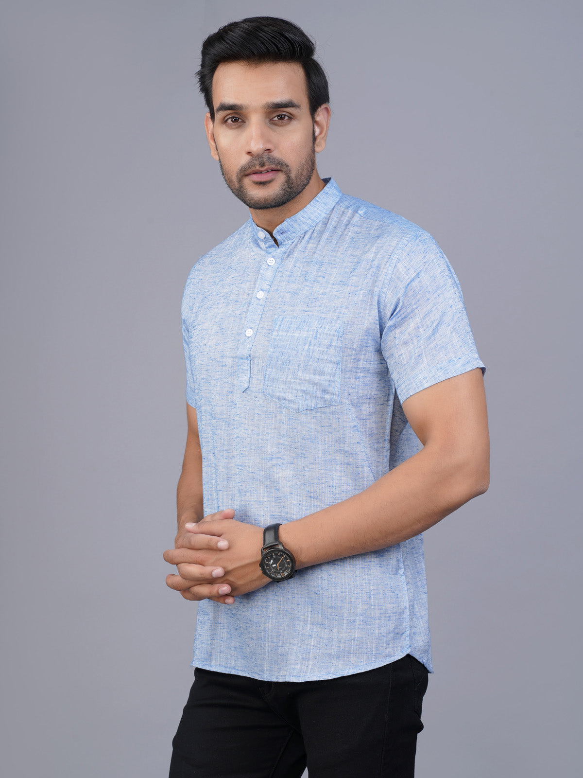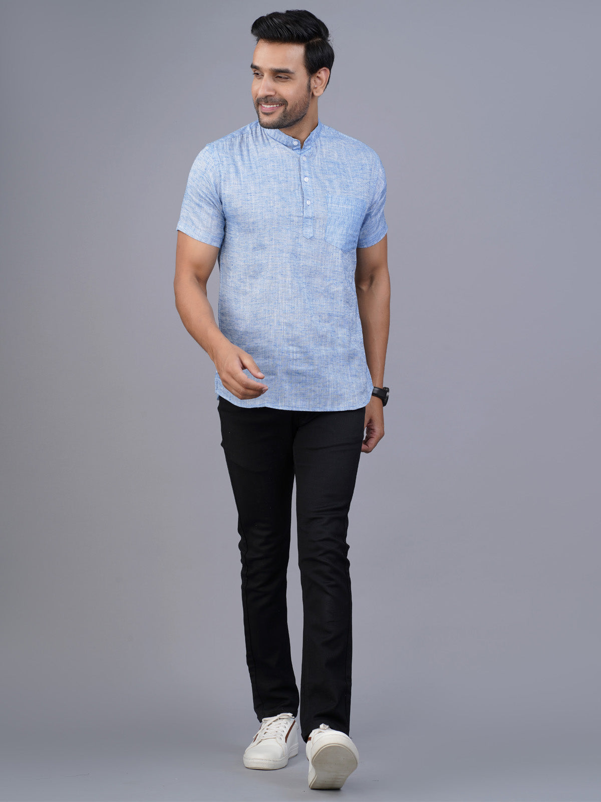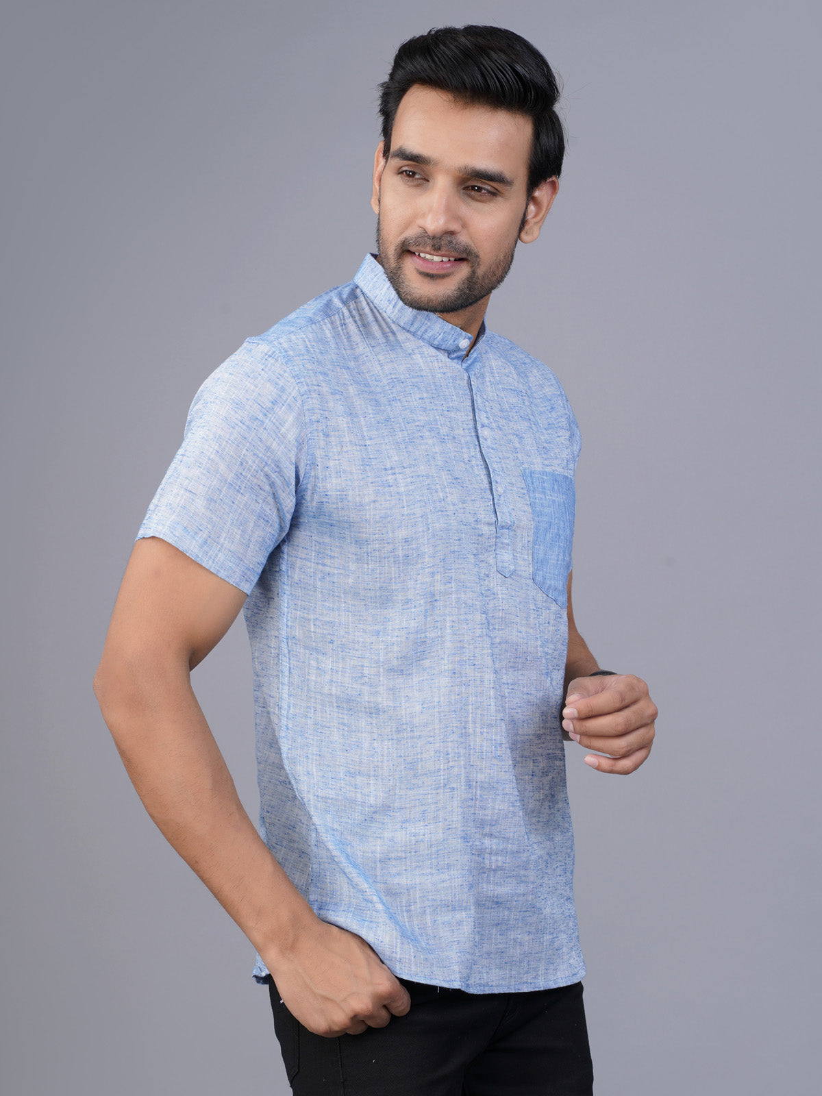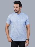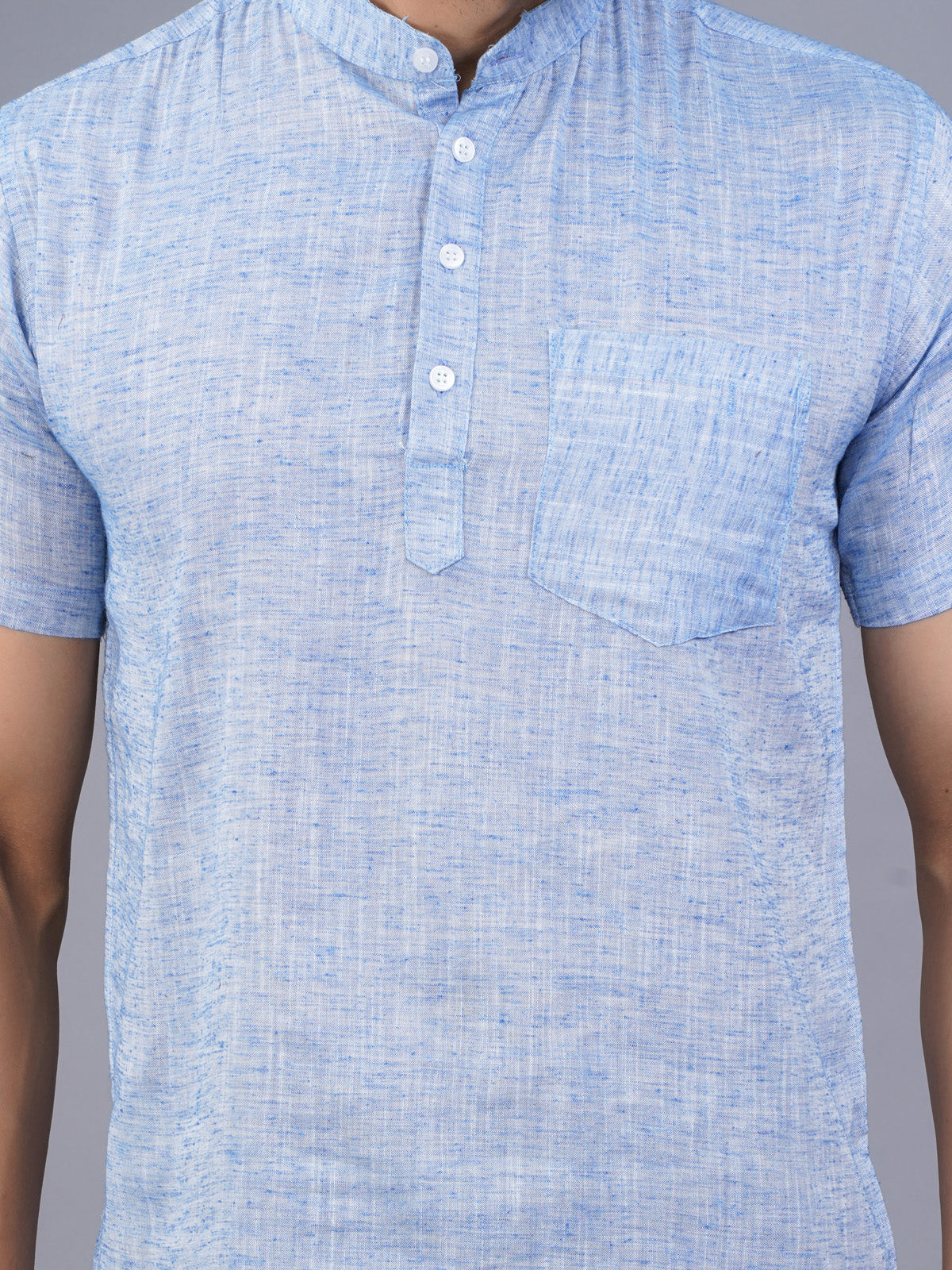 Mens Denim Blue Short Sleeves Cotton Slub Kurta