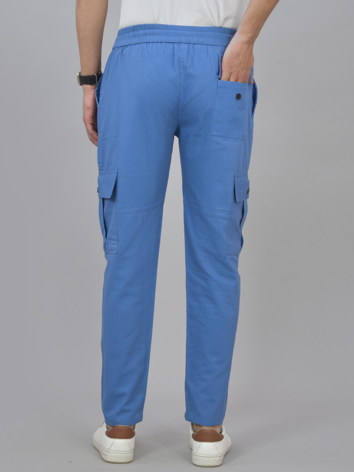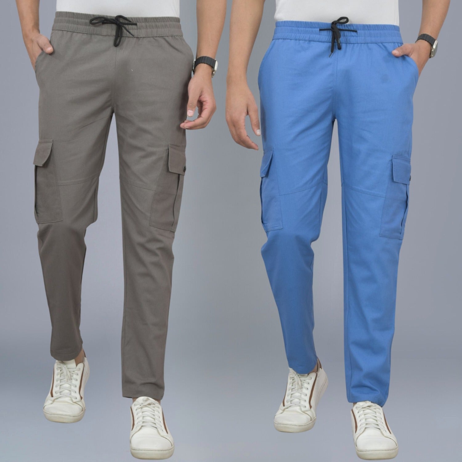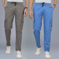 Pack Of 2 Mens Grey And Blue Twill Straight Cargo Pants Combo
