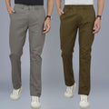 Pack Of 2 Grey And Mehendi Green Airy Linen Summer Cool Cotton Comfort Pants For Men