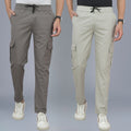 Pack Of 2 Mens Grey And Melange Grey Twill Straight Cargo Pants Combo