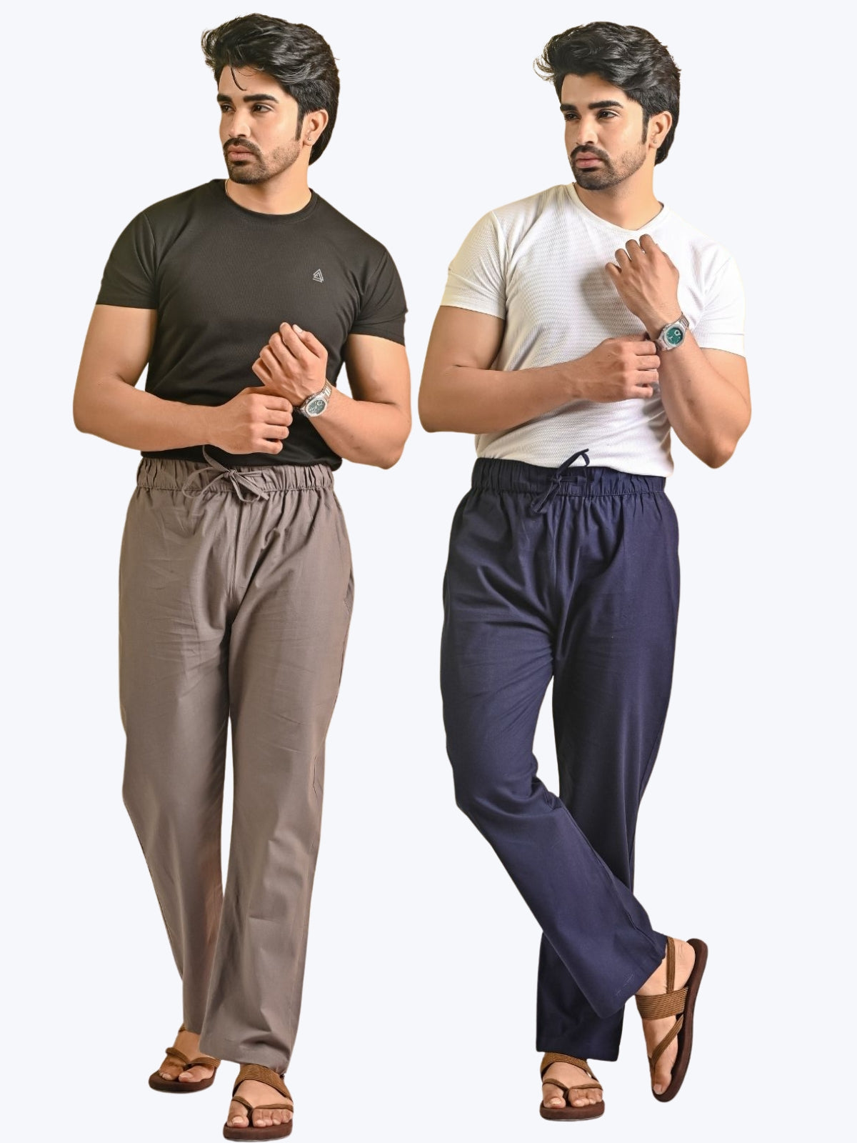 Grey And Navy Blue Loose Fit Cotton Pajama Combo