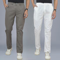 Pack Of 2 Grey And White Airy Linen Summer Cool Cotton Comfort Pants For Men