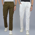 Pack Of 2 Mehendi Green And White Airy Linen Summer Cool Cotton Comfort Pants For Men