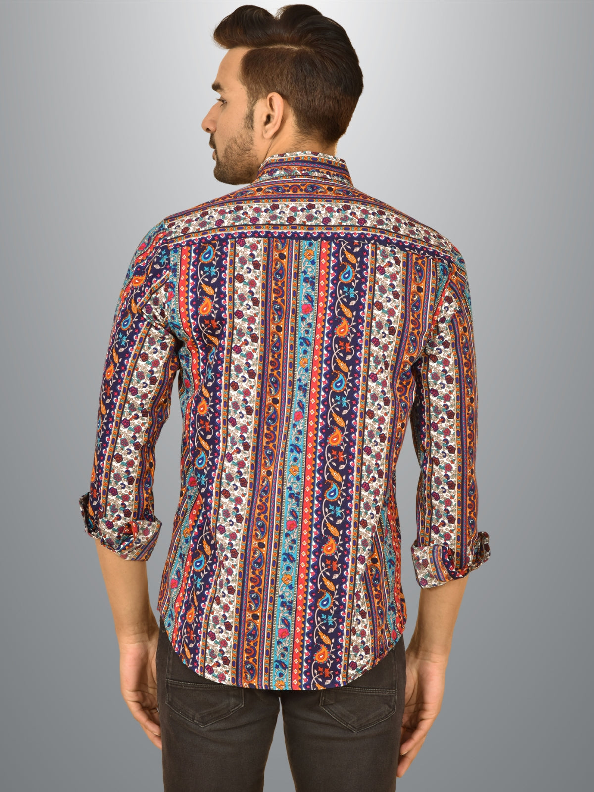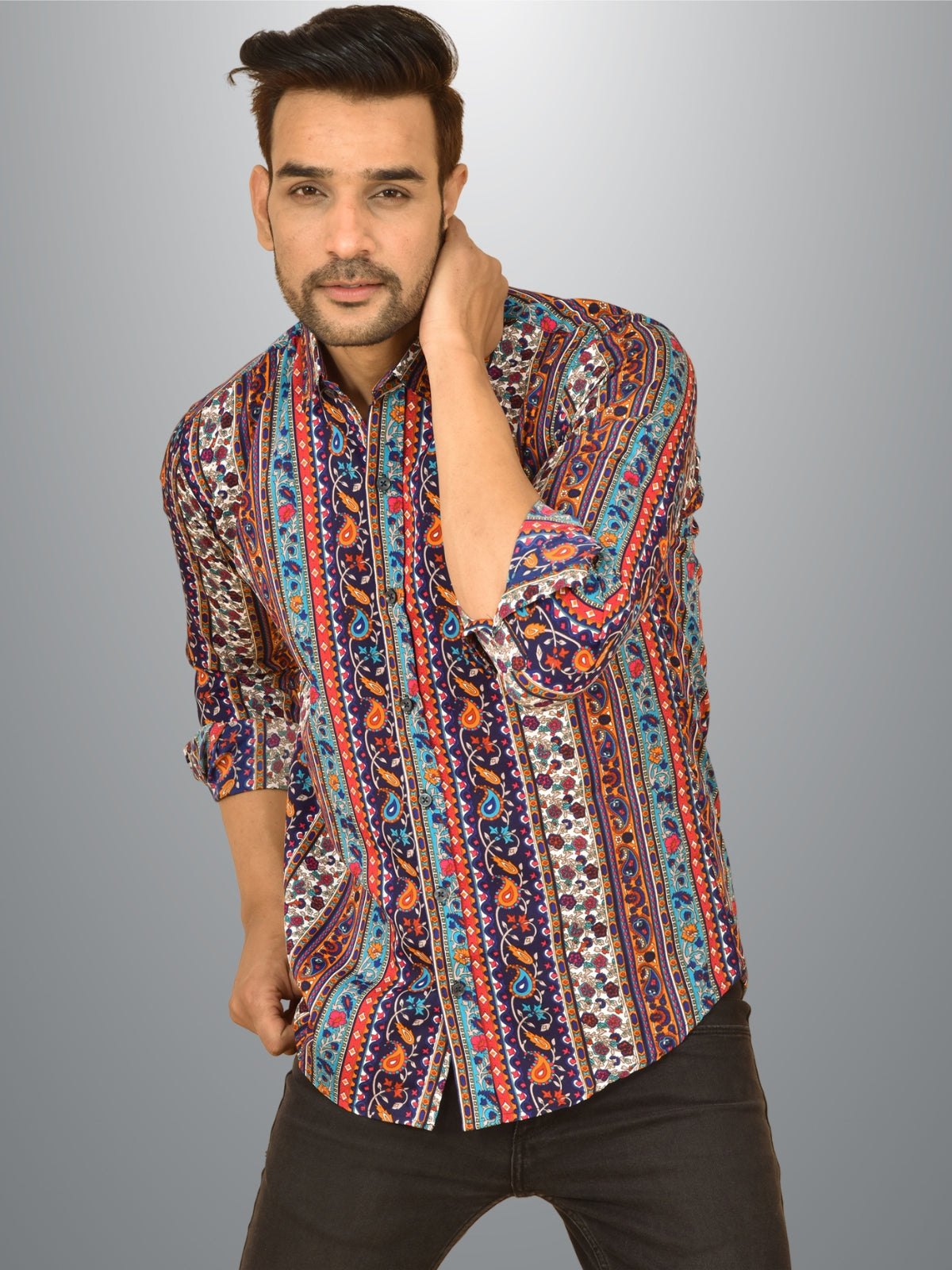 Men's Crepe Printed Shirt. Finished with Beautiful Collar and Button Plackets. Tailored Cut and Fit that hugs your body. Daily Wear And For Any Occasion. Create your stunning formal outfit combining this kurta with QuaClo Jeans and Pants. Model is wearing size M. Sight color variation is possible due to your device pixel settings and photographic lights.