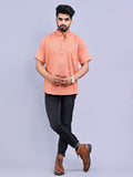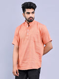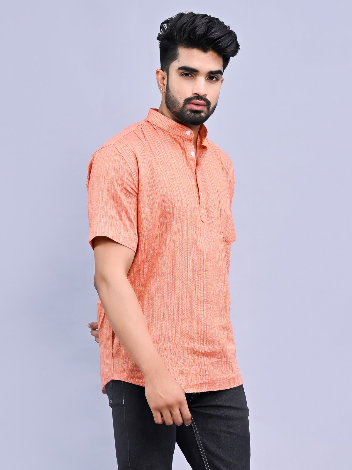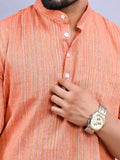 Regular Fit Orange Multi Stripes Cotton Short Kurta
