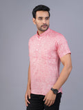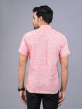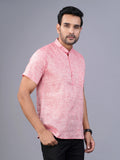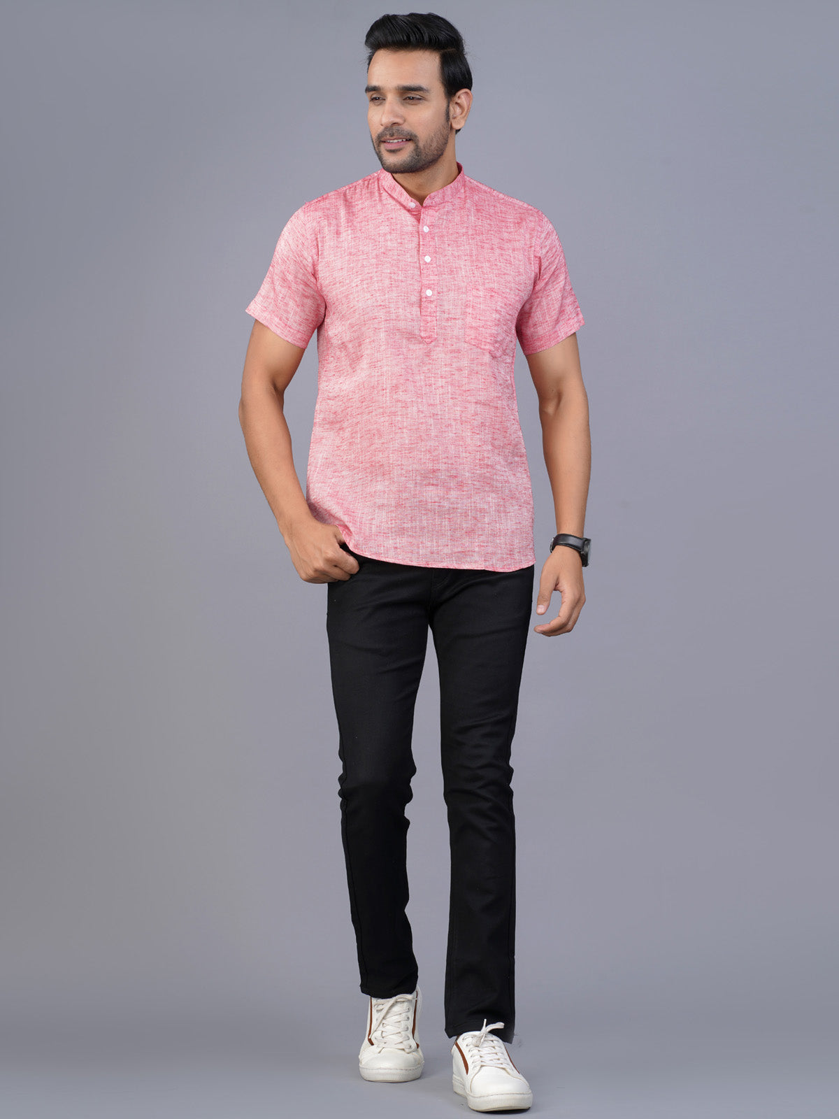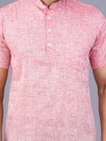 Mens Pink Short Sleeves Cotton Slub Kurta