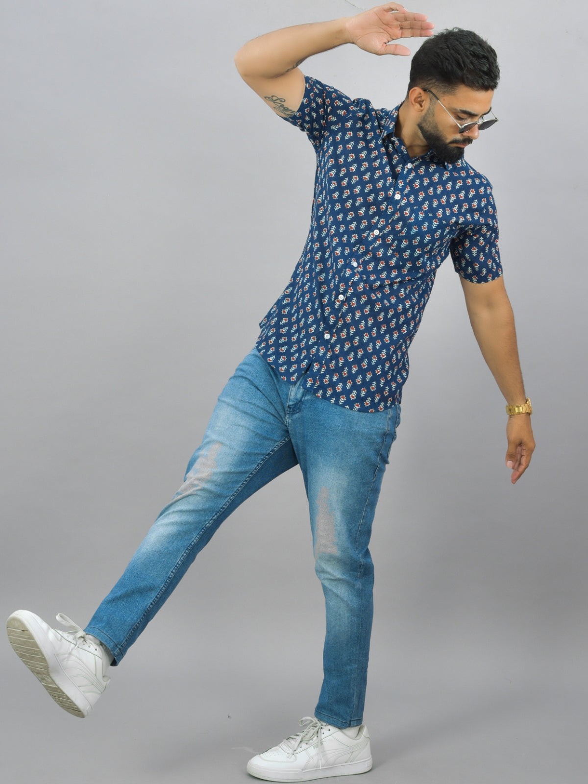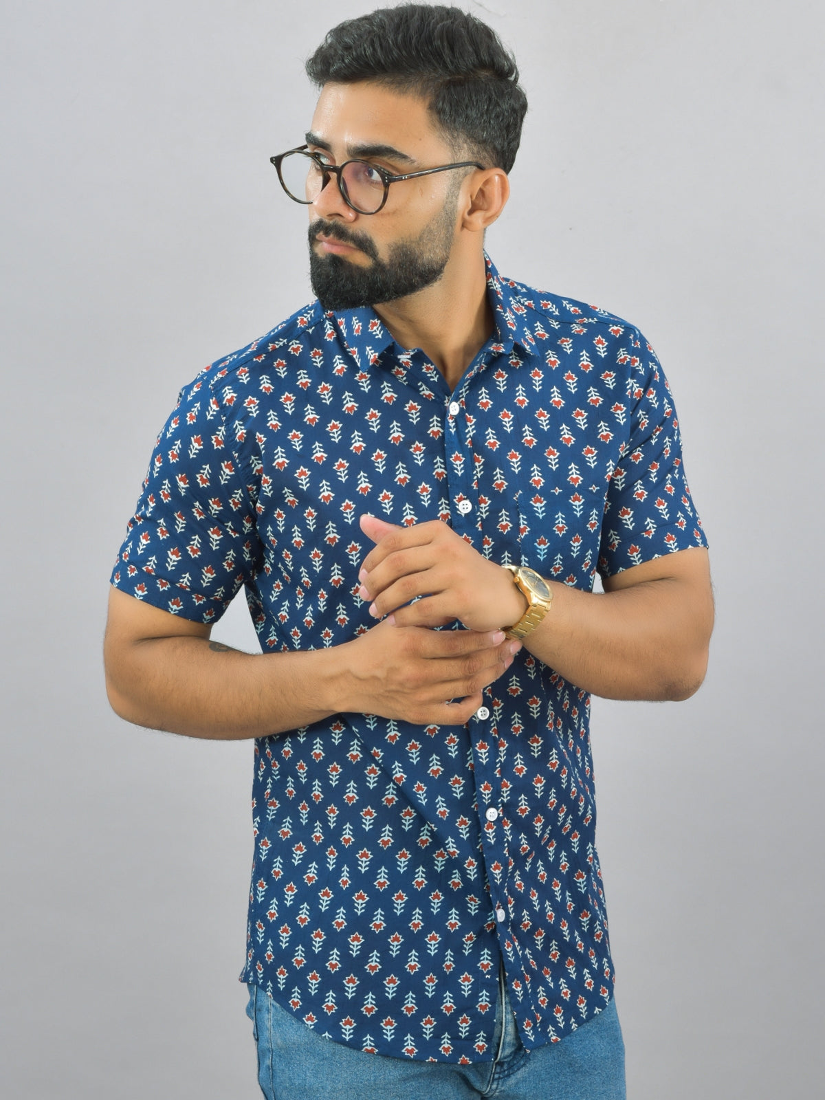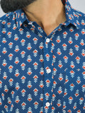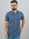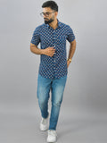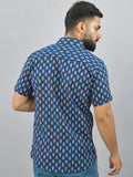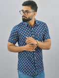 Mens Regualr Fit Half Sleeves Blue Floral Printed Cotton Shirt