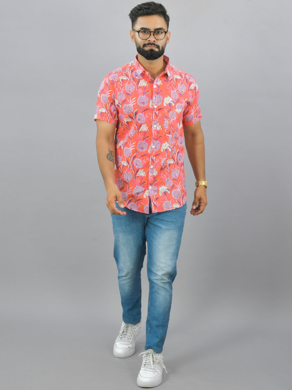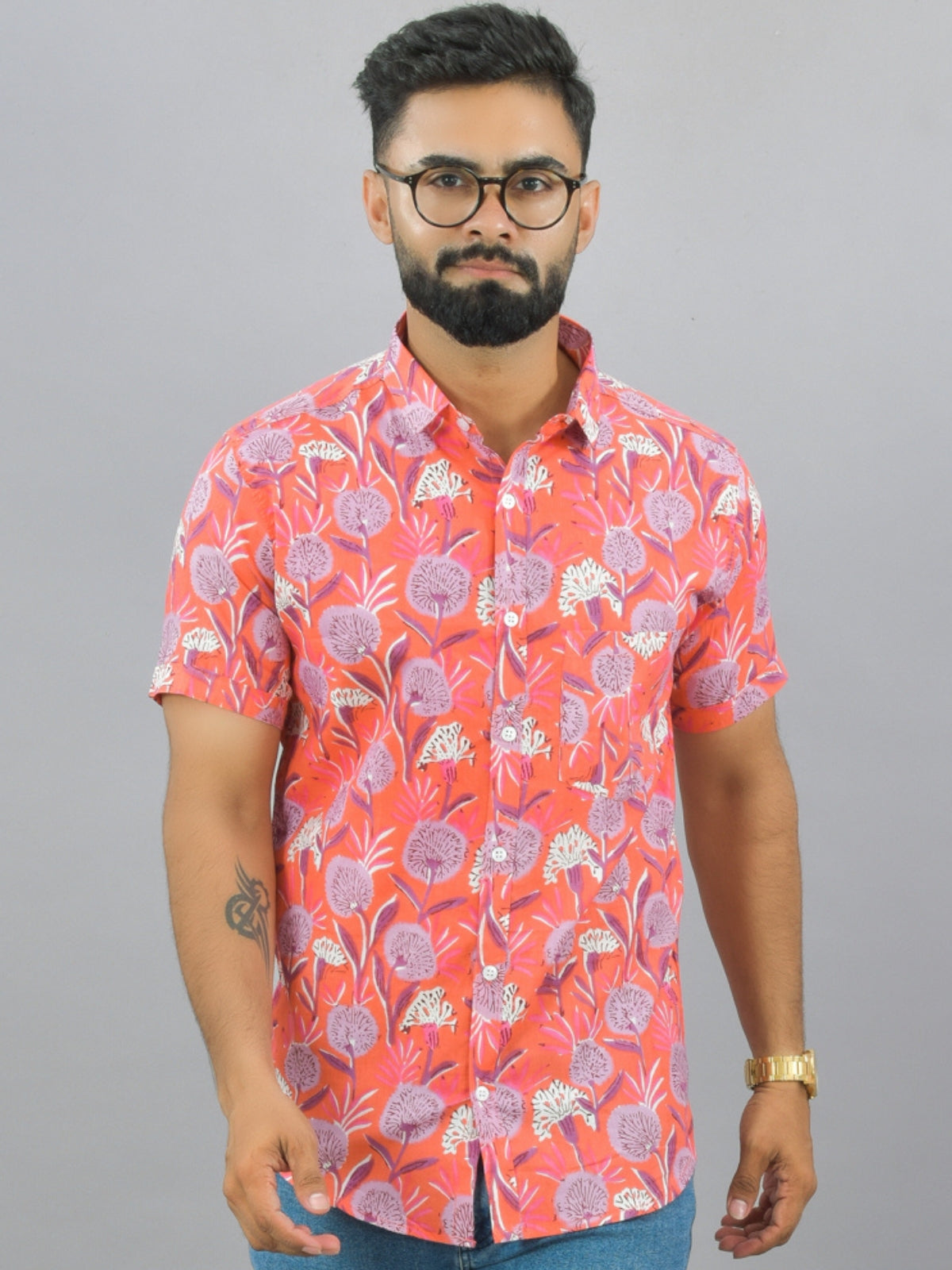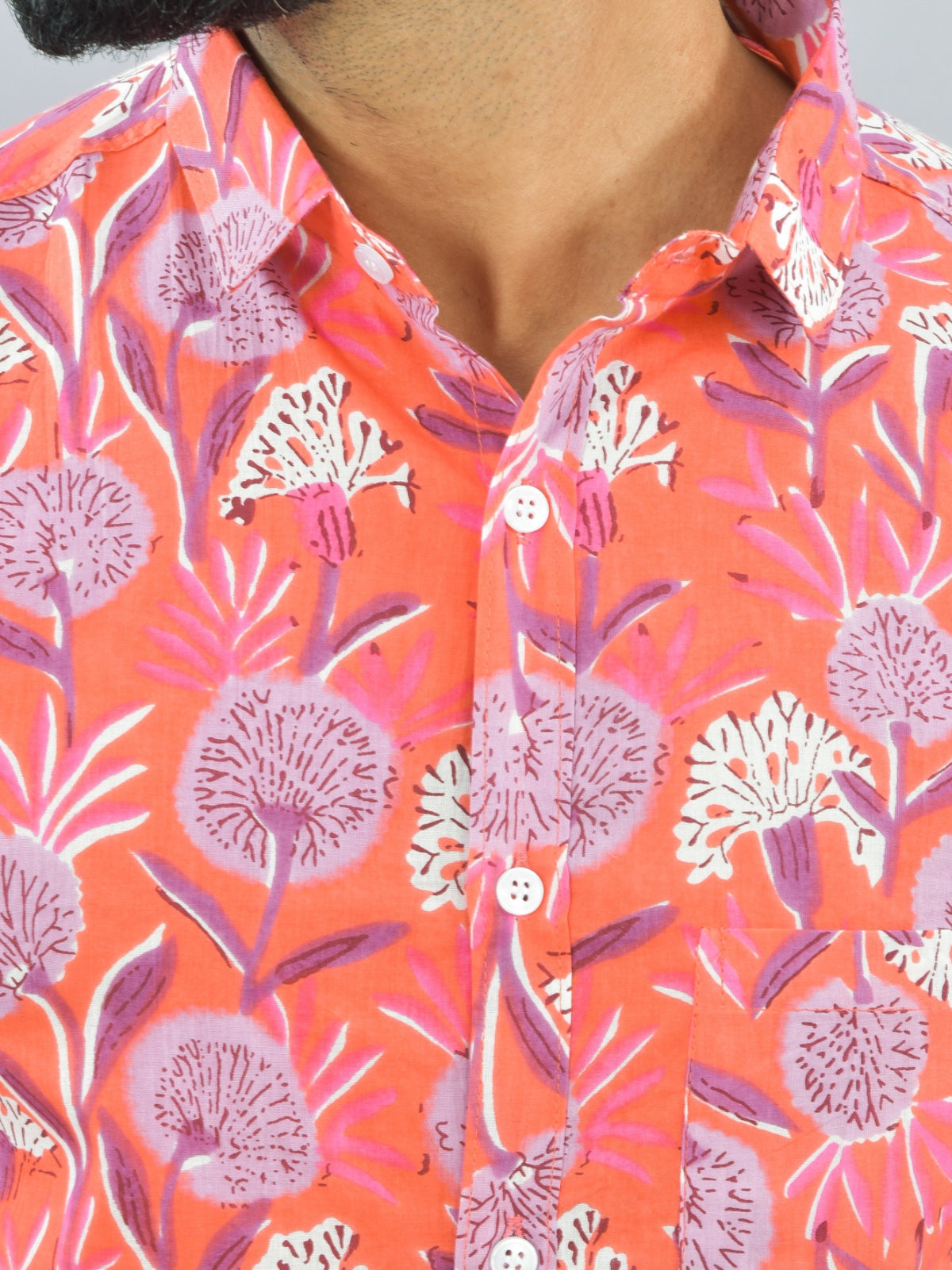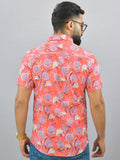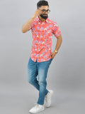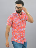 Mens Regualr Fit Half Sleeves Peach Floral Printed Cotton Shirt