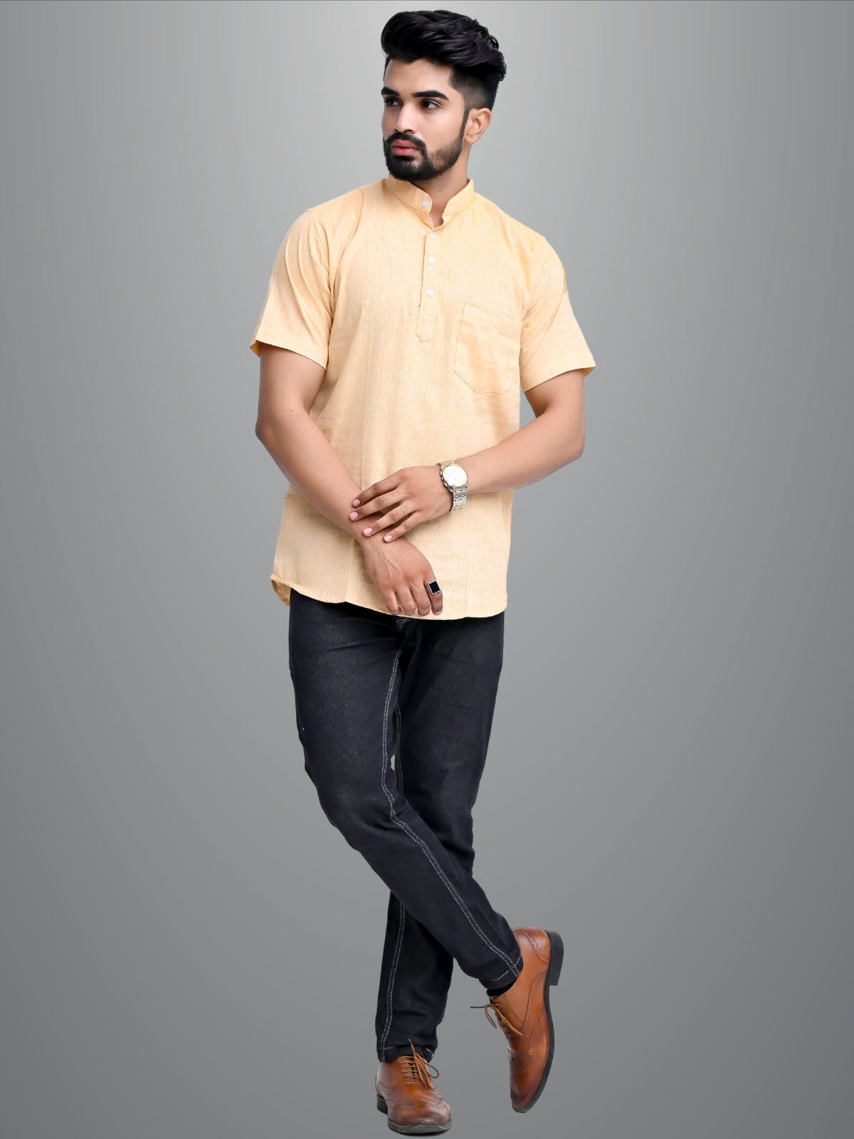 This QuaClo Men's Self Design Cotton Blend Straight Kurta will enhance your ethnic collection. This kurta, is made with the highest care and accuracy, features a distinctive self-design pattern that gives your outfit a touch of refinement. It is ideal for all-day wear because it is made of a quality cotton blend fabric that provides outstanding comfort and breathability. The button placket and Mandarin/Chinese Neck collar lend a traditional touch, while the straight cut appearance gives it a modern and trendy appearance. This self-designed kurta is a versatile option that seamlessly mixes style and comfort, whether you're attending a wedding, festive celebration, or a formal or casual occasion.