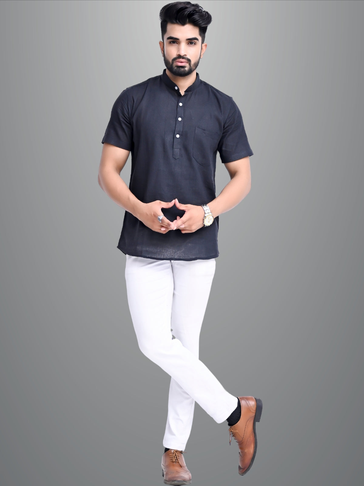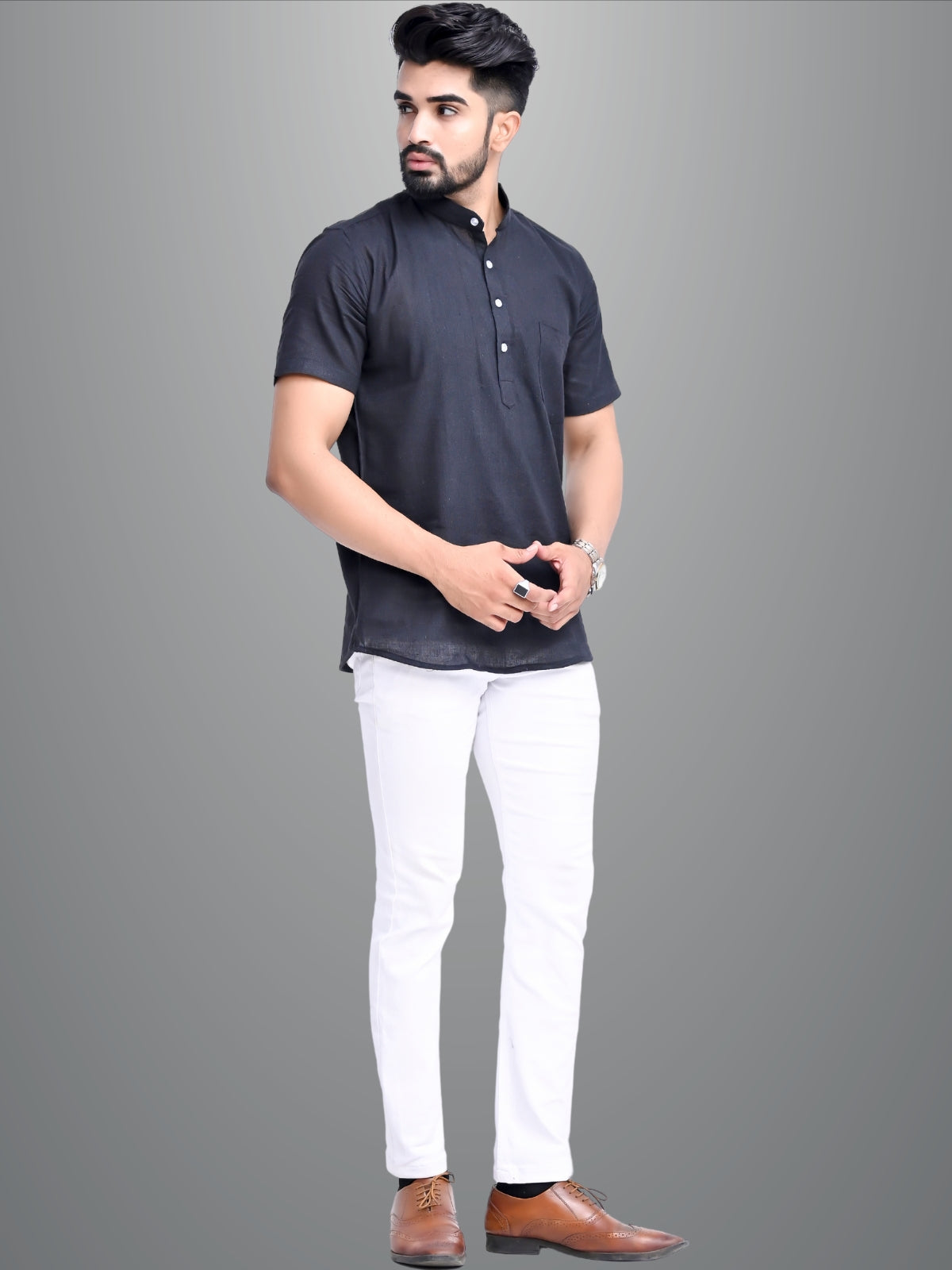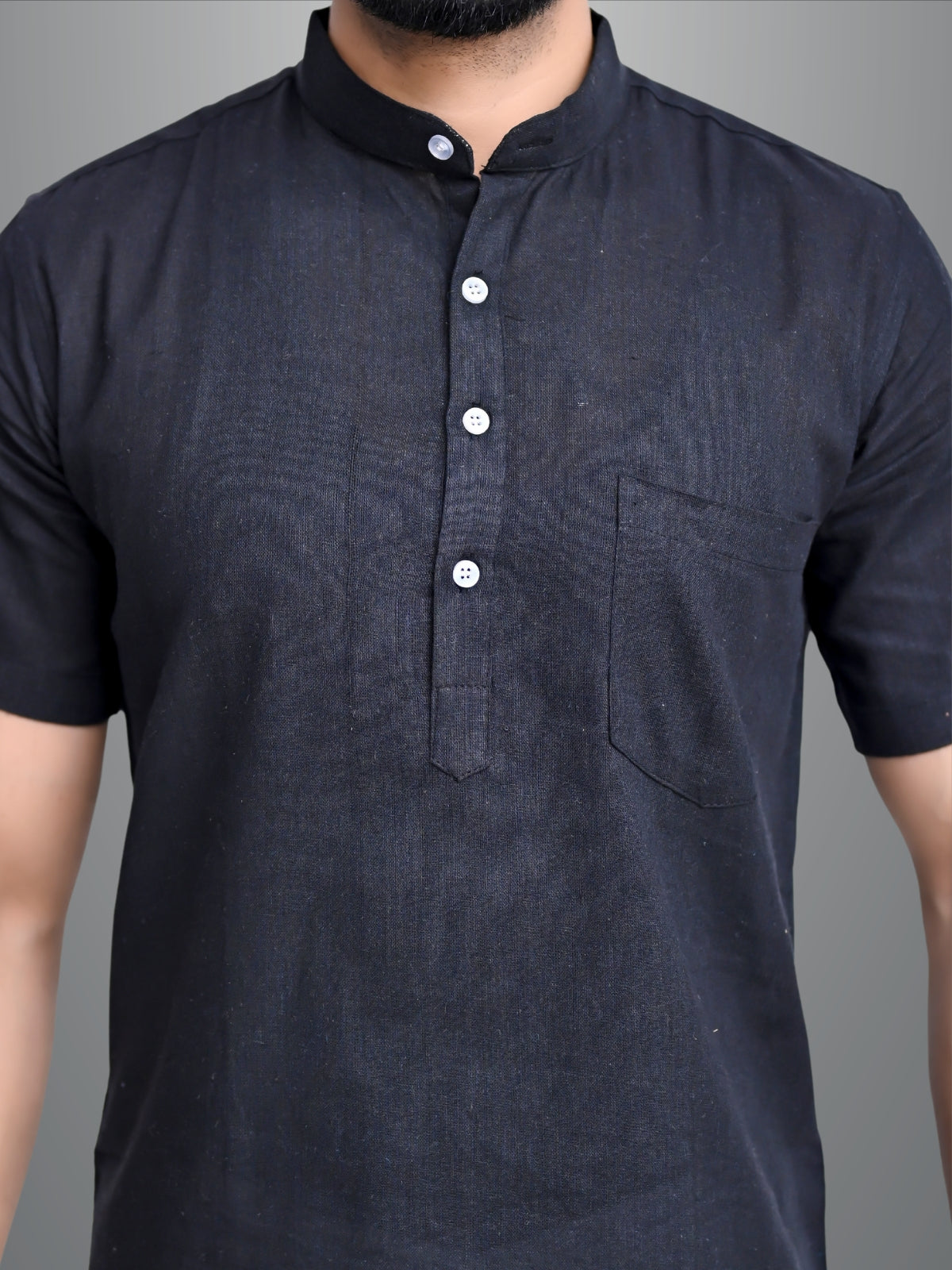 This QuaClo Men's Self Design Cotton Blend Straight Kurta will enhance your ethnic collection. This kurta, is made with the highest care and accuracy, features a distinctive self-design pattern that gives your outfit a touch of refinement. It is ideal for all-day wear because it is made of a quality cotton blend fabric that provides outstanding comfort and breathability. The button placket and Mandarin/Chinese Neck collar lend a traditional touch, while the straight cut appearance gives it a modern and trendy appearance. This self-designed kurta is a versatile option that seamlessly mixes style and comfort, whether you're attending a wedding, festive celebration, or a formal or casual occasion.