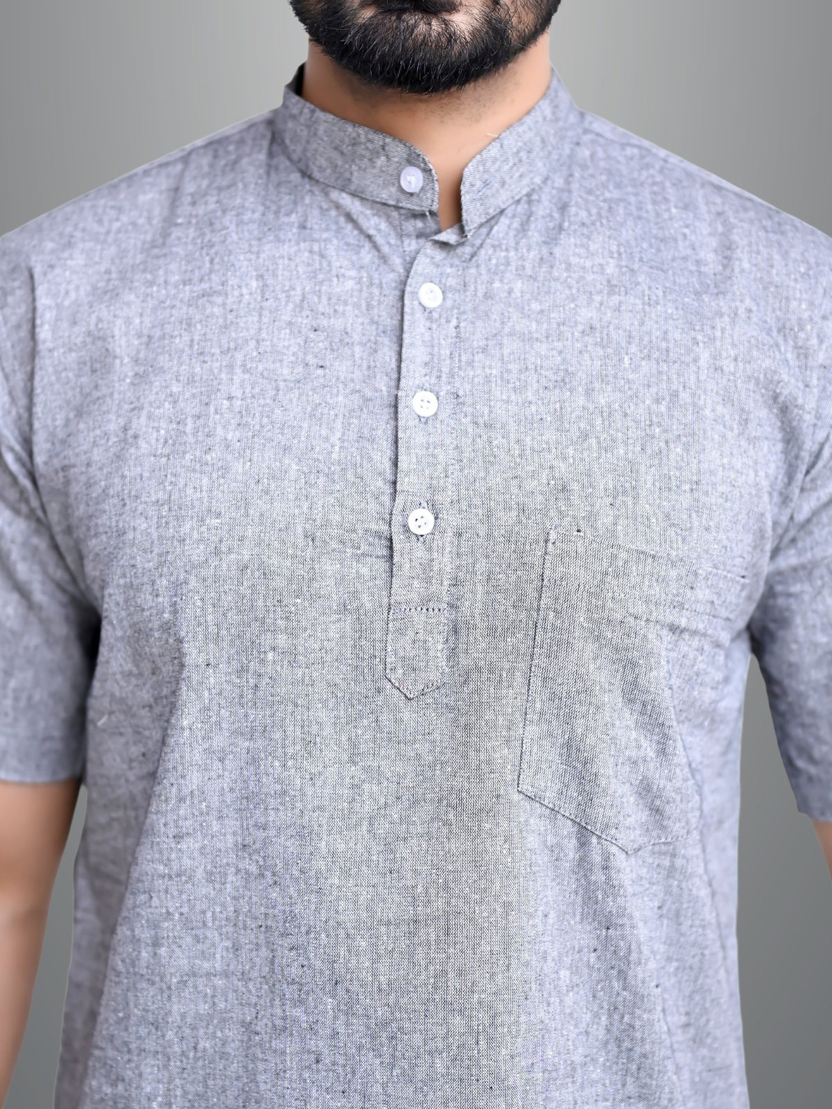 This QuaClo Men's Self Design Cotton Blend Straight Kurta will enhance your ethnic collection. This kurta, is made with the highest care and accuracy, features a distinctive self-design pattern that gives your outfit a touch of refinement. It is ideal for all-day wear because it is made of a quality cotton blend fabric that provides outstanding comfort and breathability. The button placket and Mandarin/Chinese Neck collar lend a traditional touch, while the straight cut appearance gives it a modern and trendy appearance. This self-designed kurta is a versatile option that seamlessly mixes style and comfort, whether you're attending a wedding, festive celebration, or a formal or casual occasion.