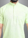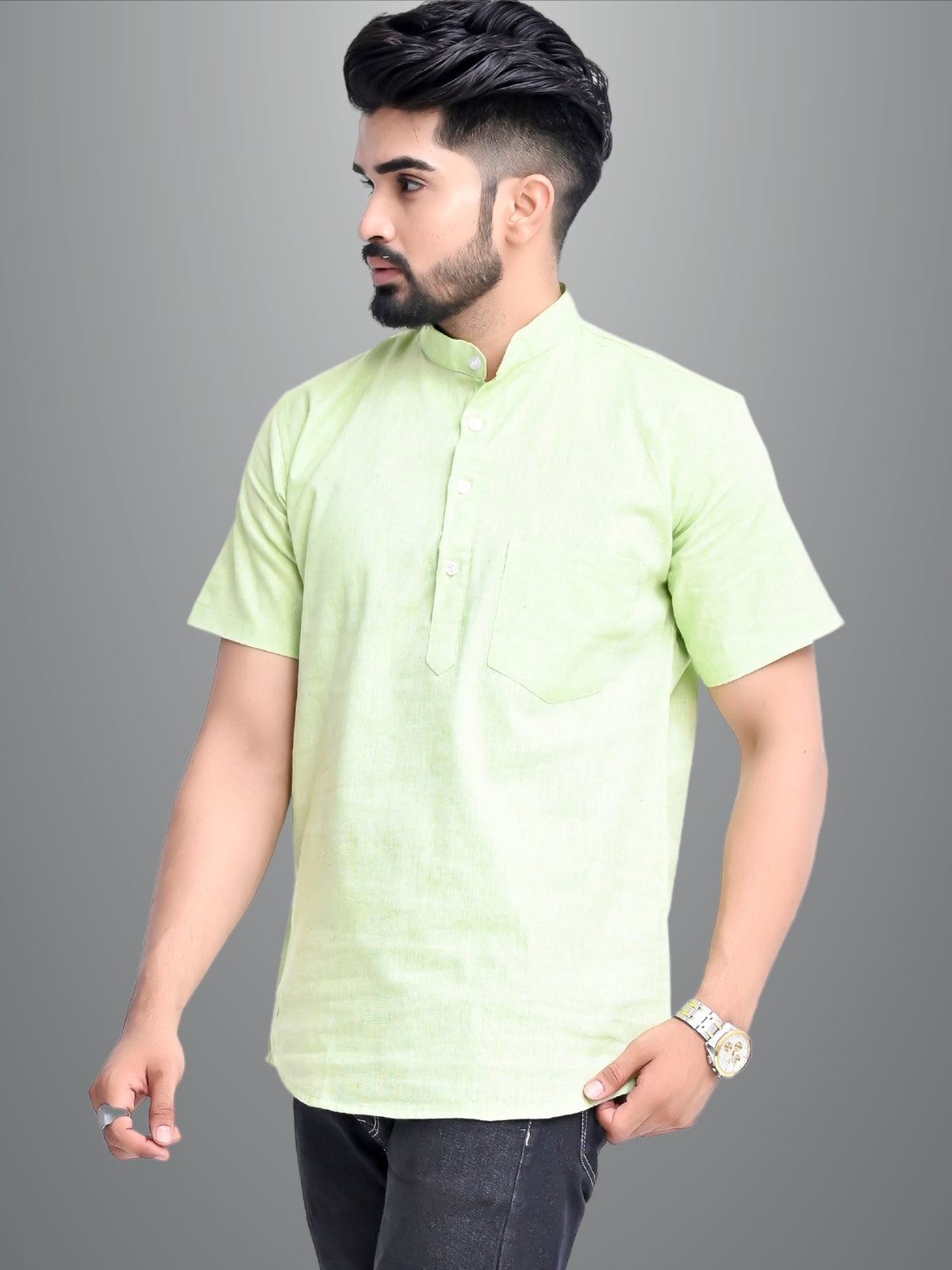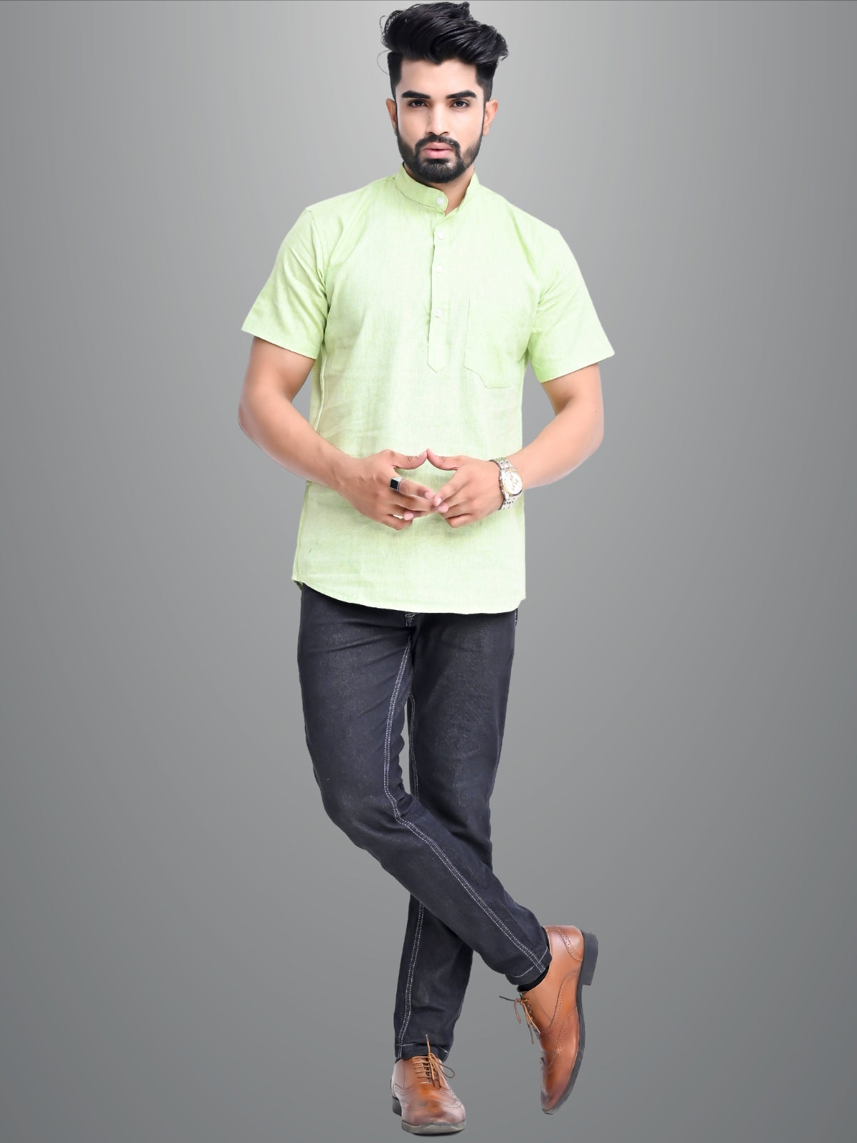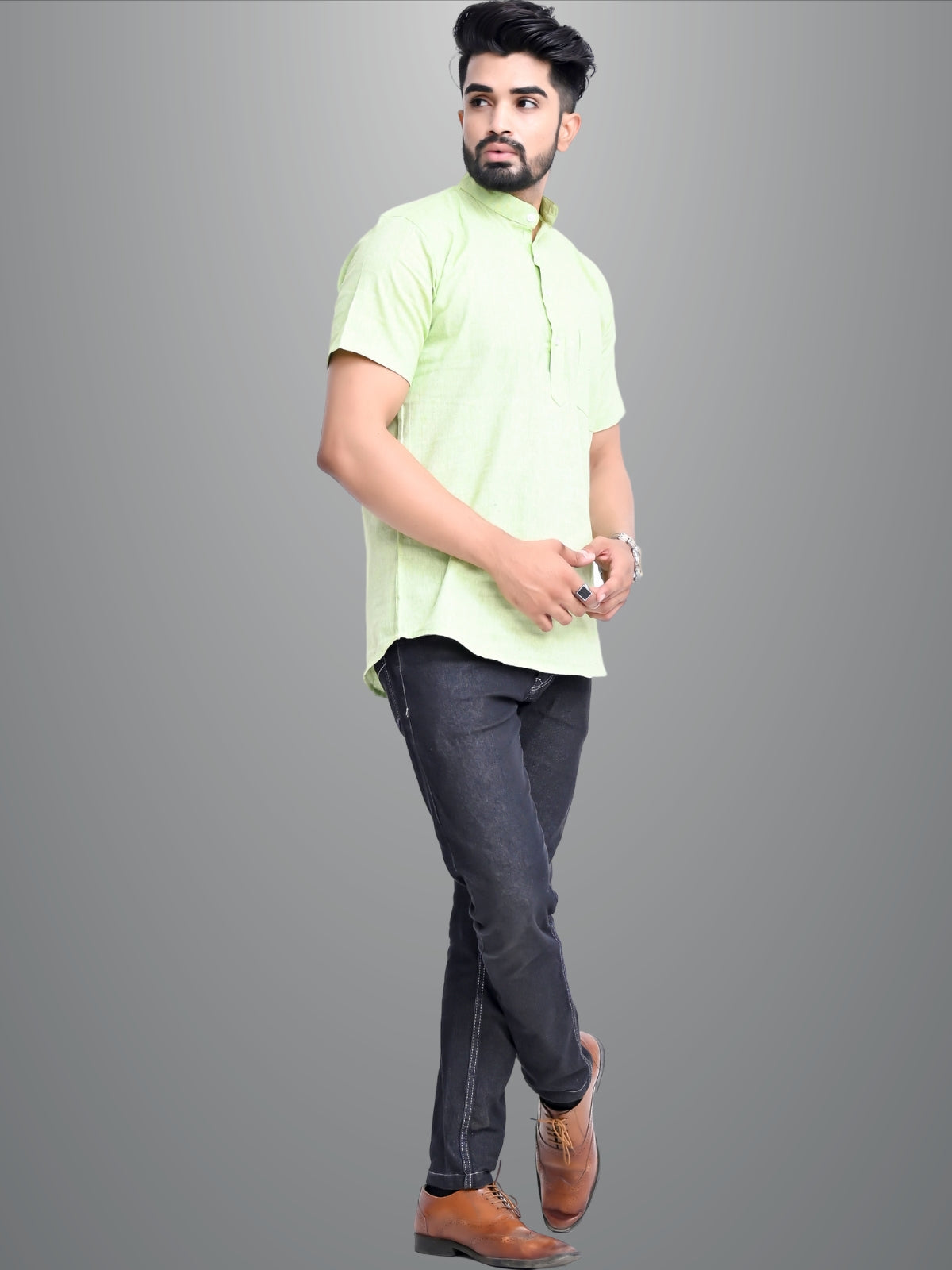 Mens Solid Light Green Khadi Cotton Short Kurta