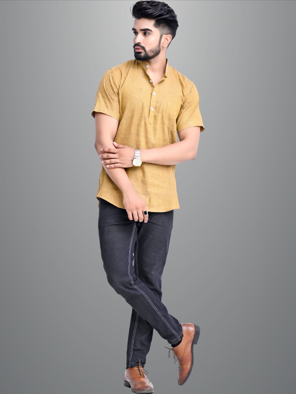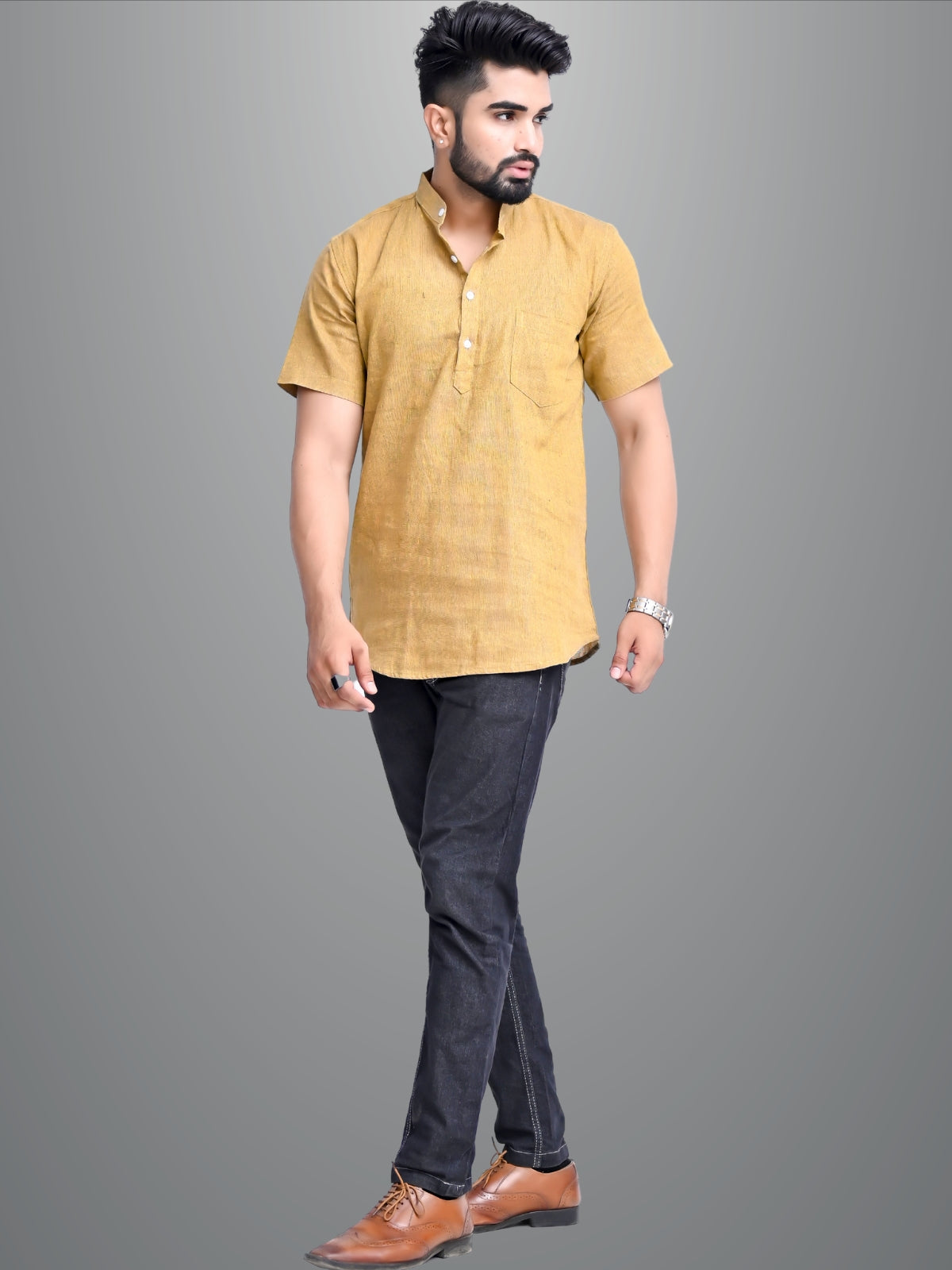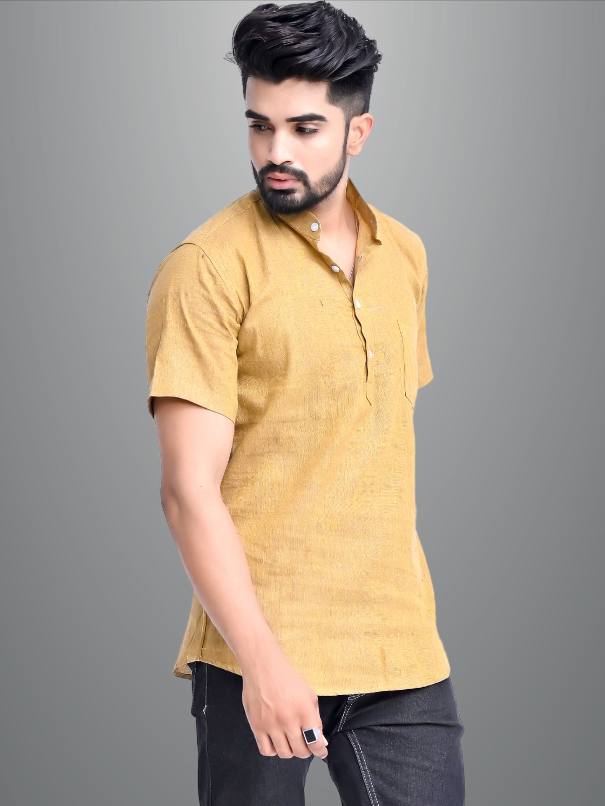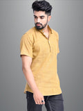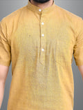 Mens Solid Mustard Khadi Cotton Short Kurta