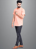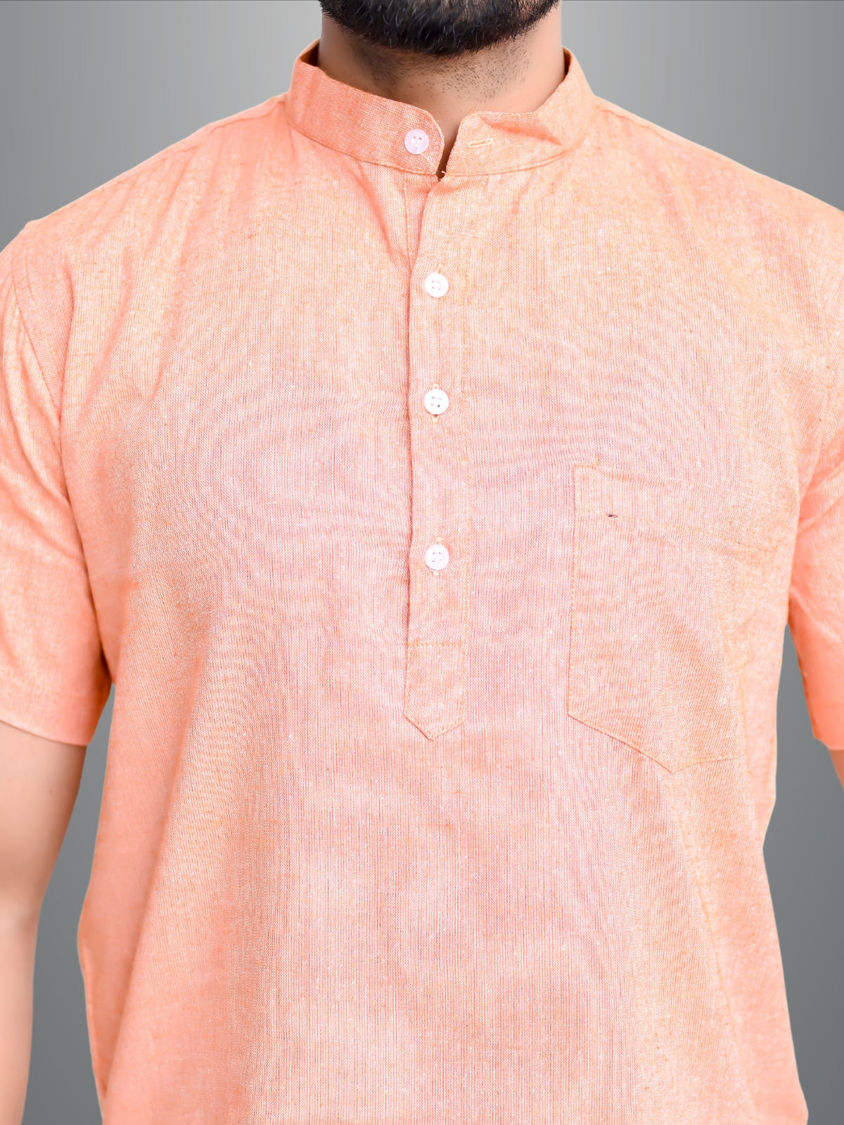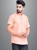 Mens Solid Orange Khadi Cotton Short Kurta