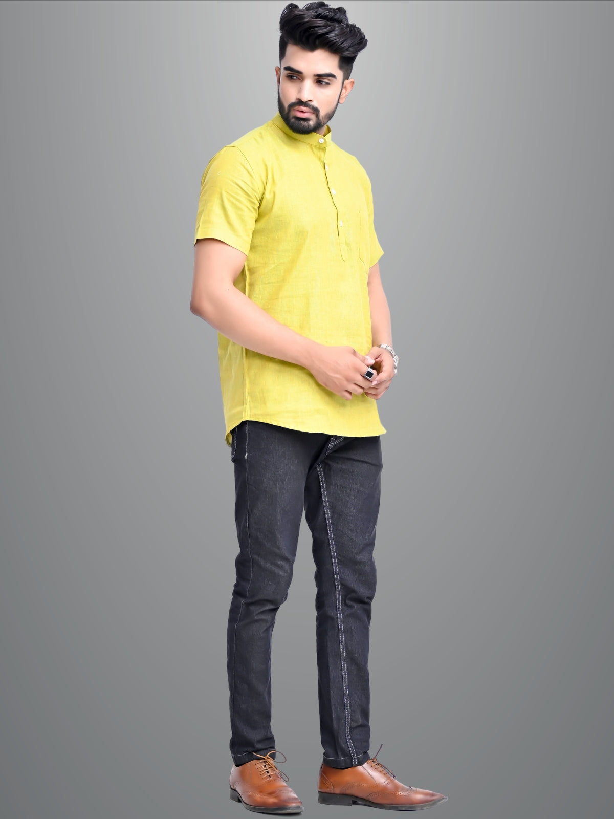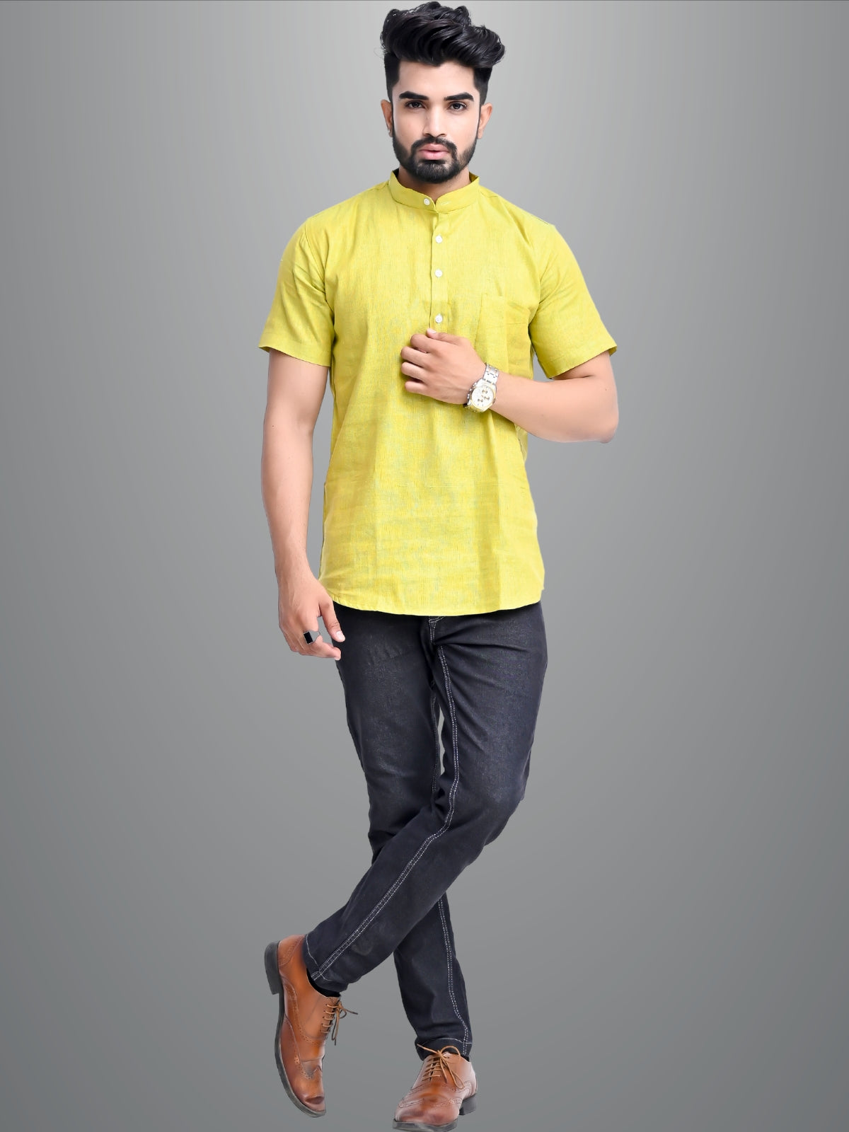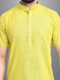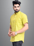 Mens Solid Parrot Green Cotton Blend Short Kurta