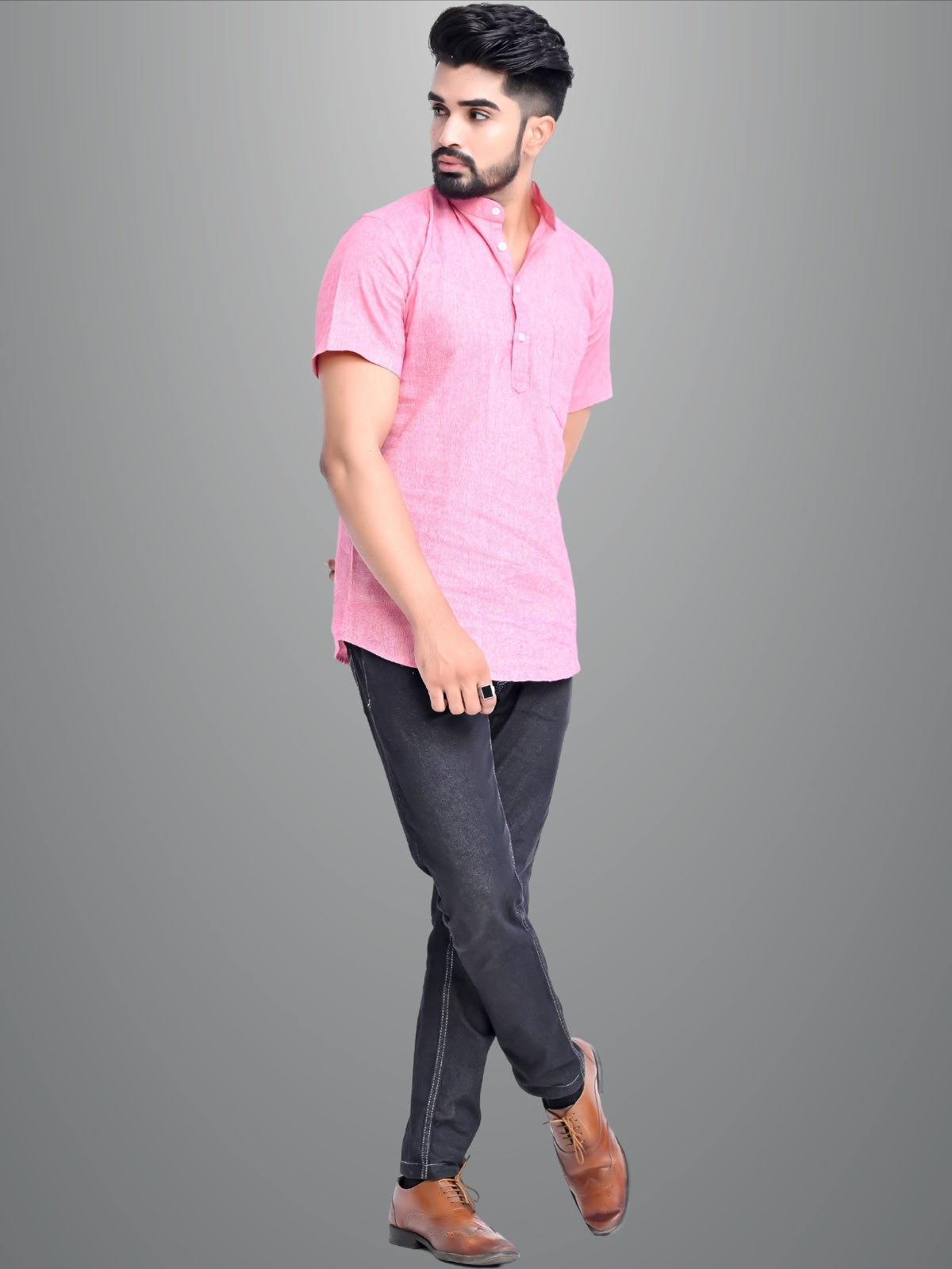 This QuaClo Men's Self Design Cotton Blend Straight Kurta will enhance your ethnic collection. This kurta, is made with the highest care and accuracy, features a distinctive self-design pattern that gives your outfit a touch of refinement. It is ideal for all-day wear because it is made of a quality cotton blend fabric that provides outstanding comfort and breathability. The button placket and Mandarin/Chinese Neck collar lend a traditional touch, while the straight cut appearance gives it a modern and trendy appearance. This self-designed kurta is a versatile option that seamlessly mixes style and comfort, whether you're attending a wedding, festive celebration, or a formal or casual occasion.