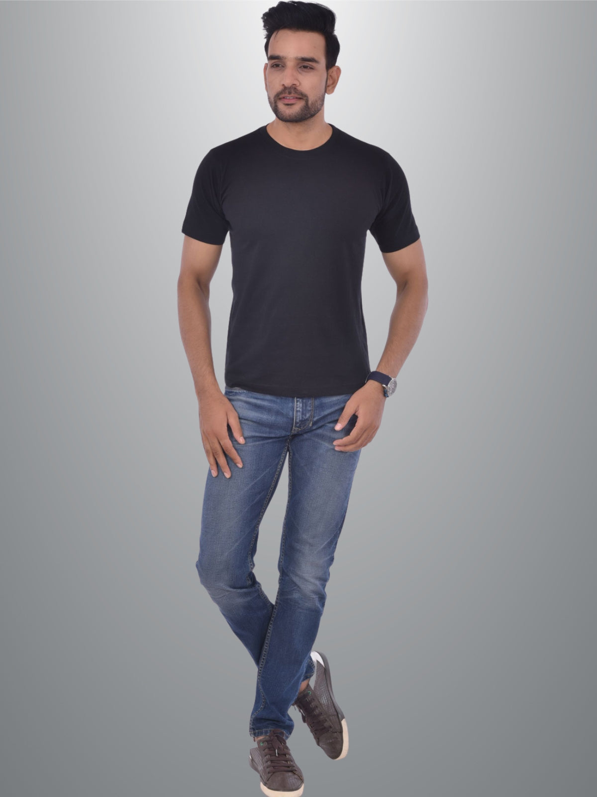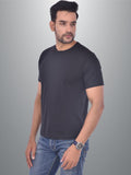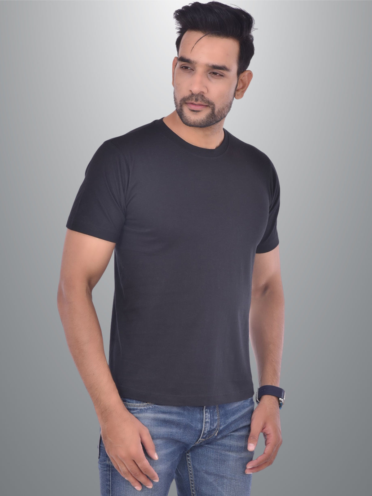 Mens Solid Round Neck Half Sleeve Cotton Blend Black T-shirt