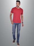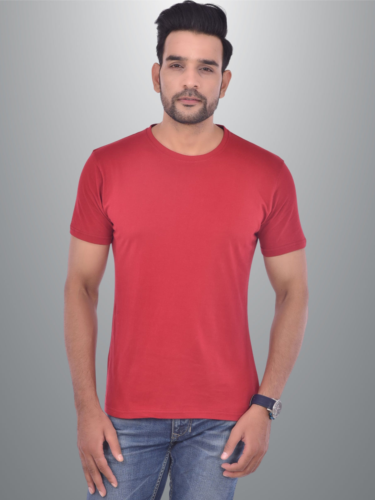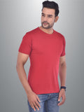 Mens Solid Round Neck Half Sleeve Cotton Blend Maroon T-shirt