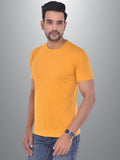 Mens Solid Round Neck Half Sleeve Cotton Blend Mustard T-shirt