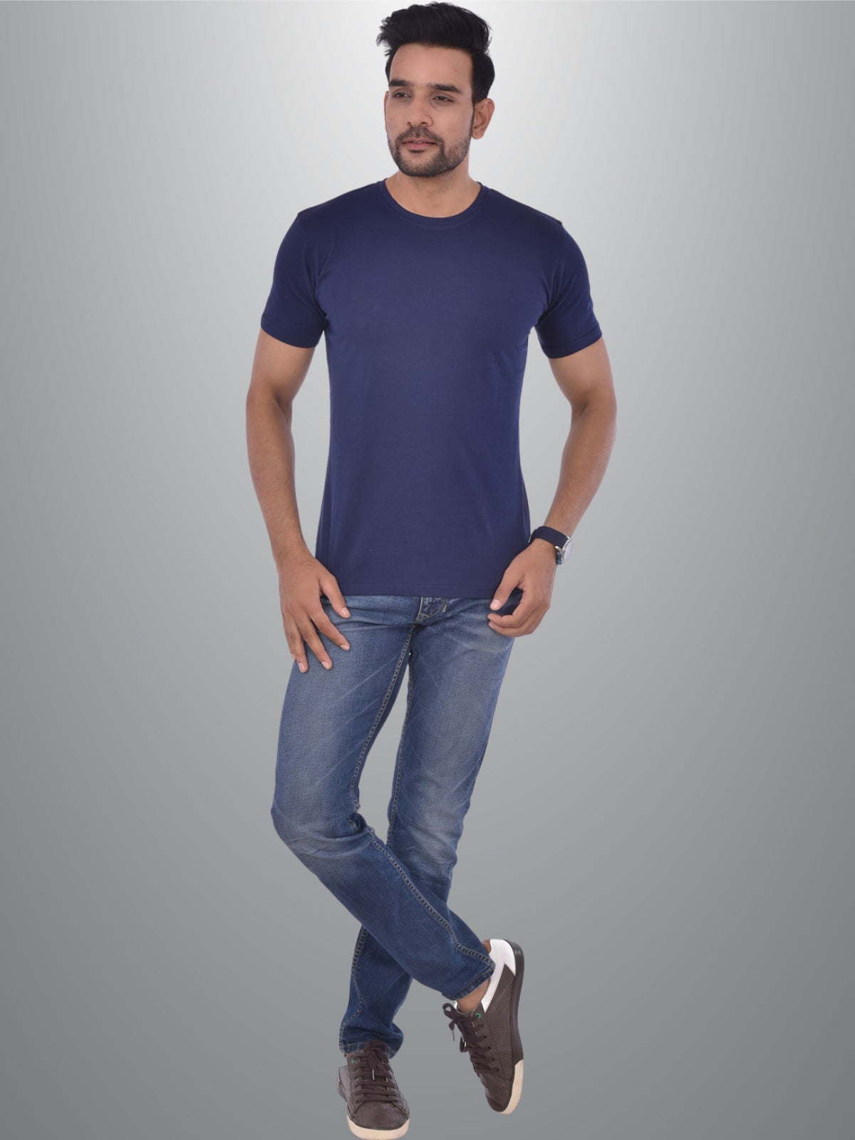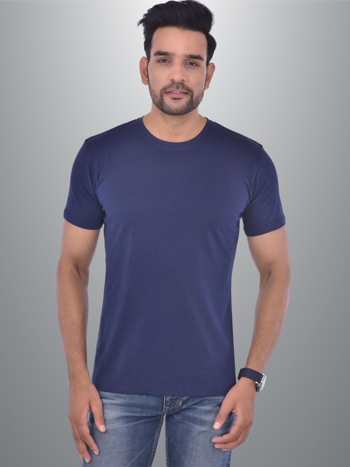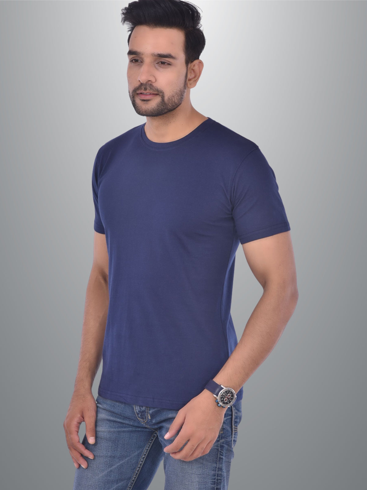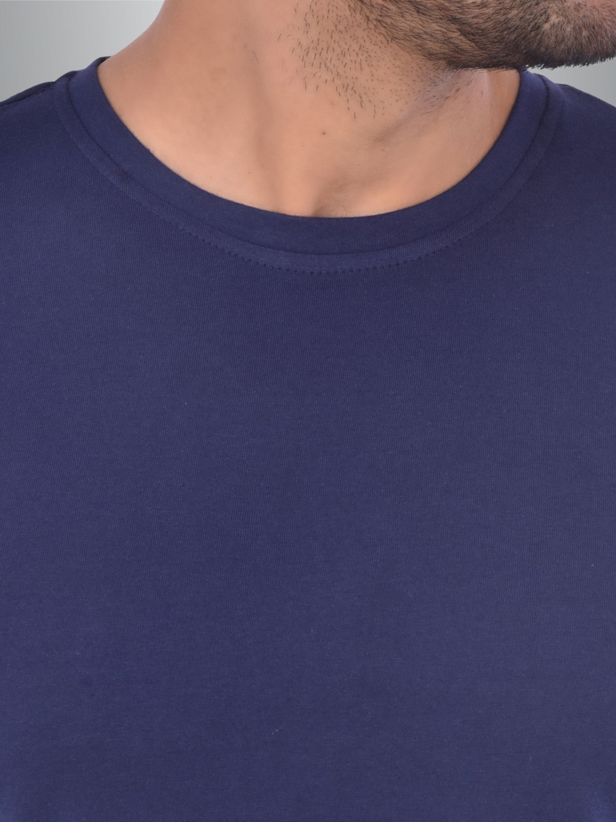 Mens Solid Round Neck Half Sleeve Cotton Blend Navy Blue T-shirt