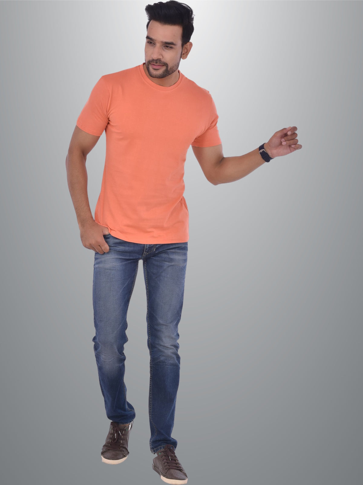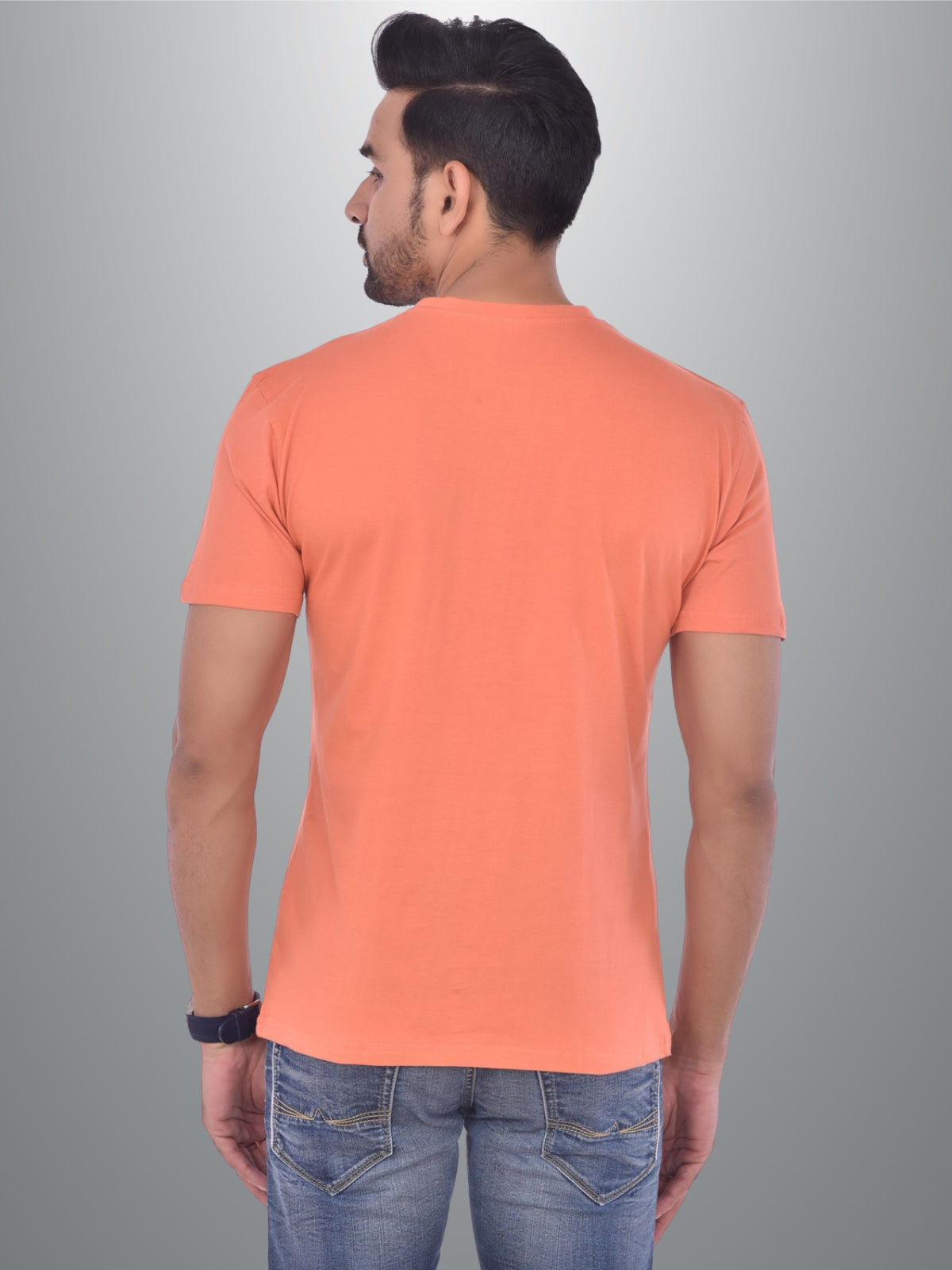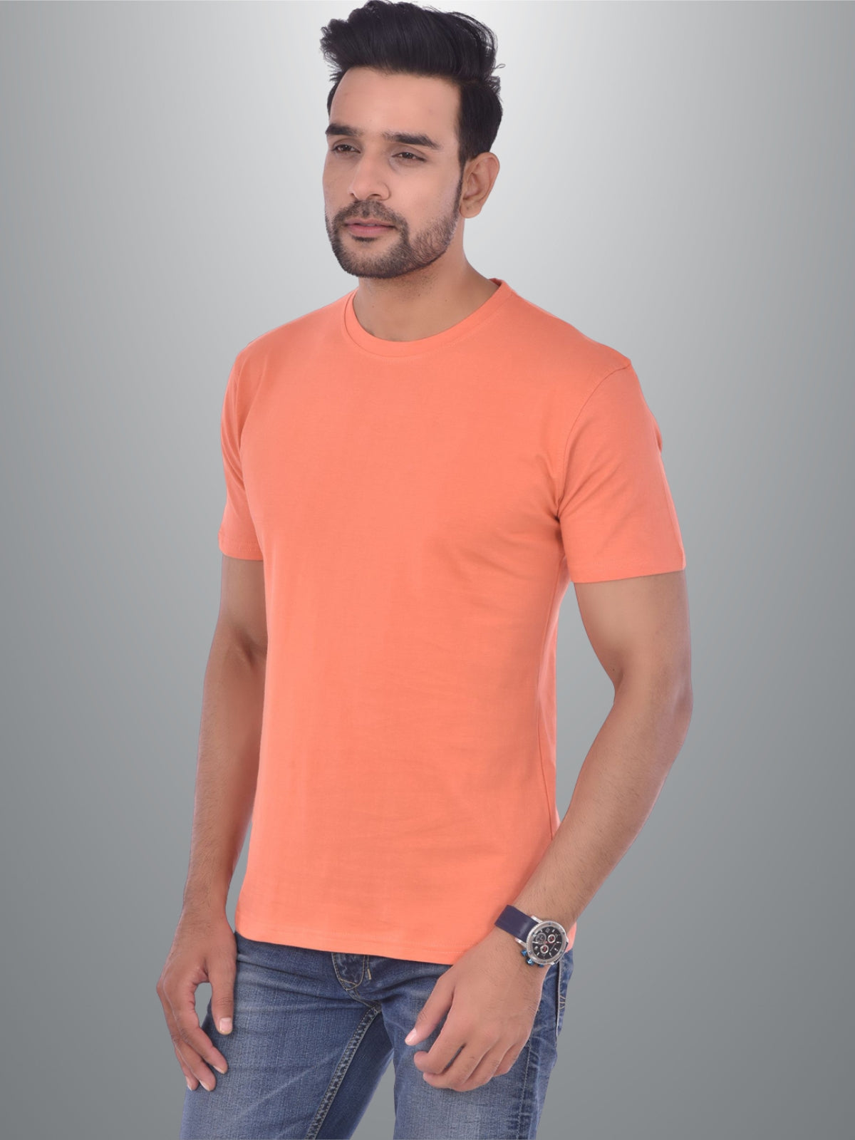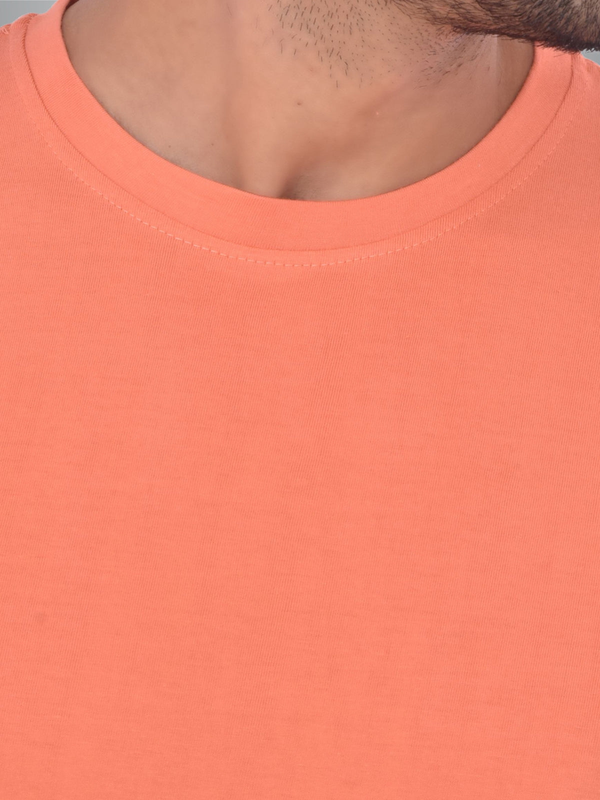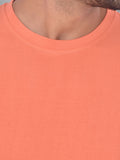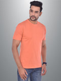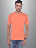 Mens Solid Round Neck Half Sleeve Cotton Blend Peach T-shirt