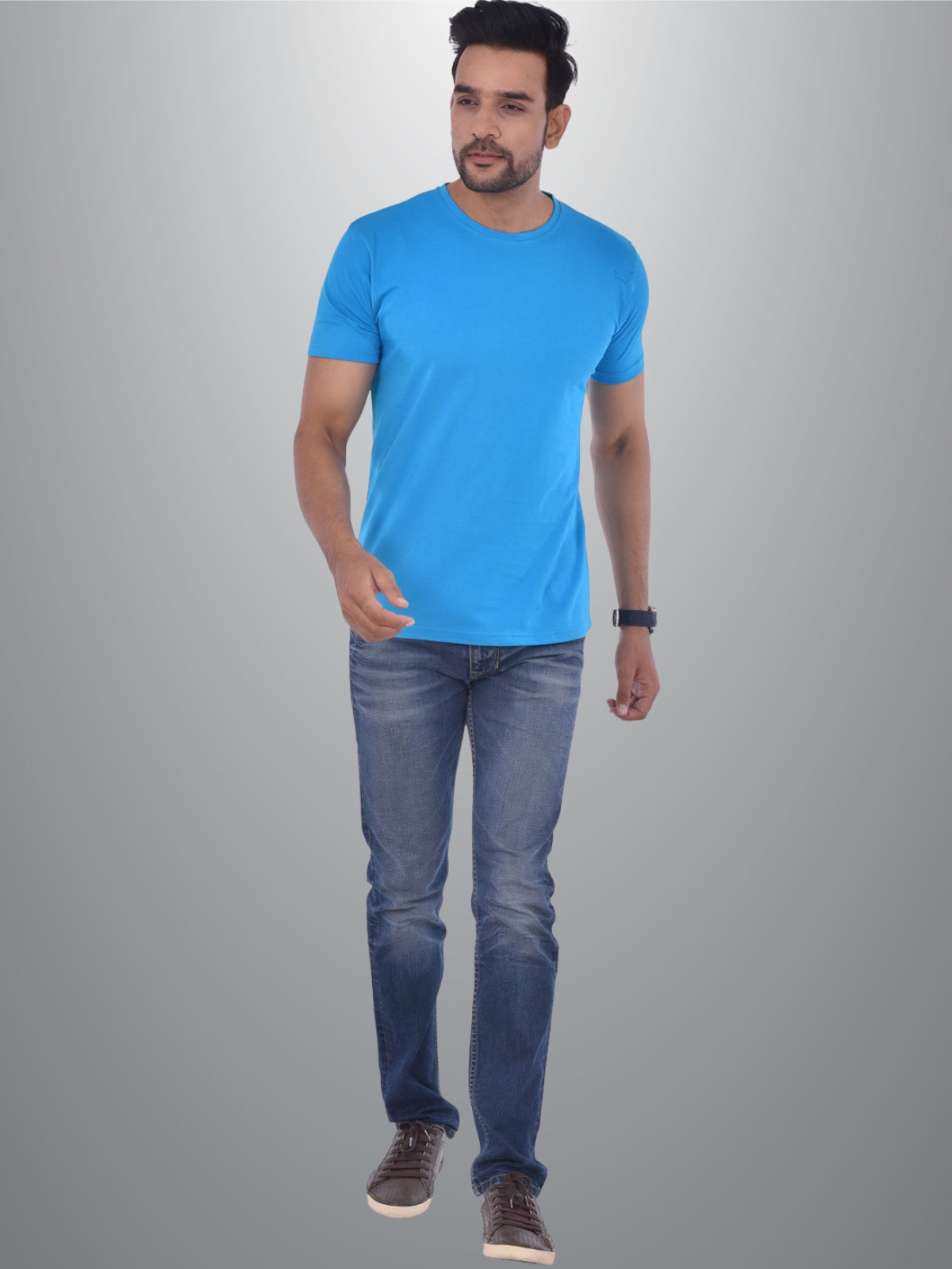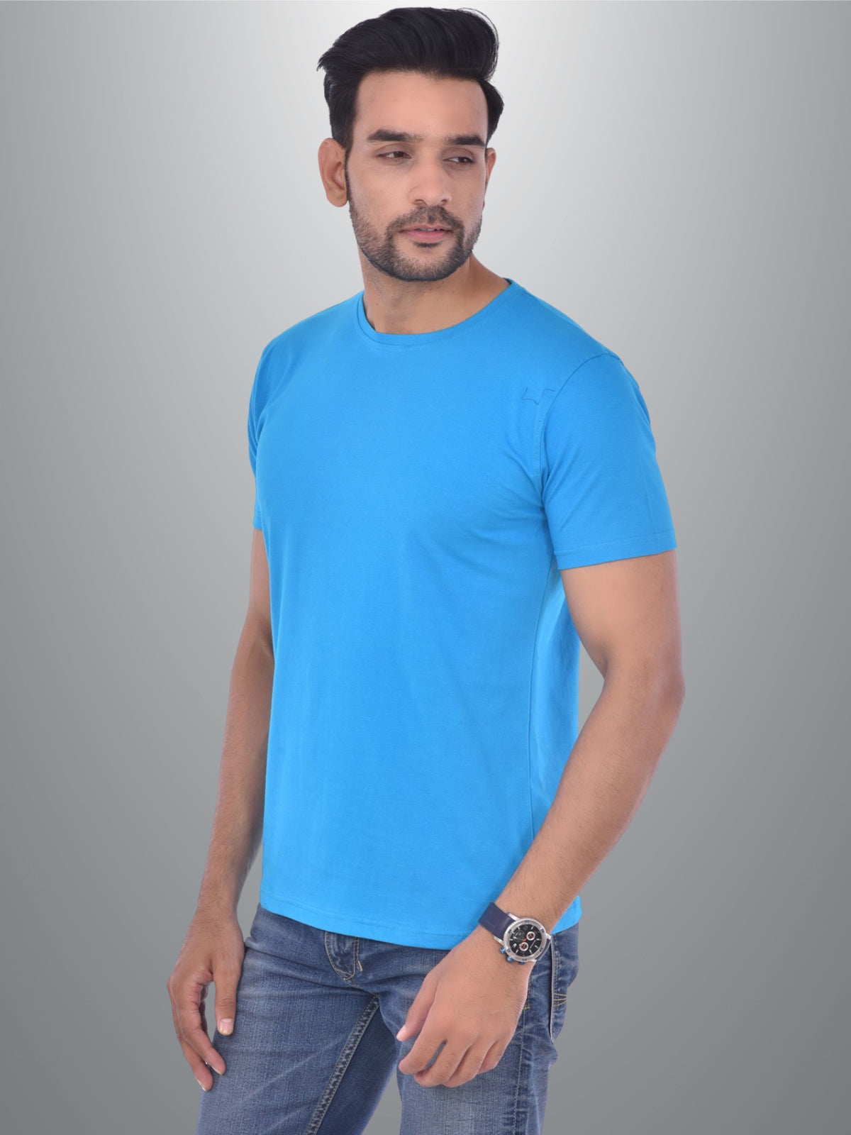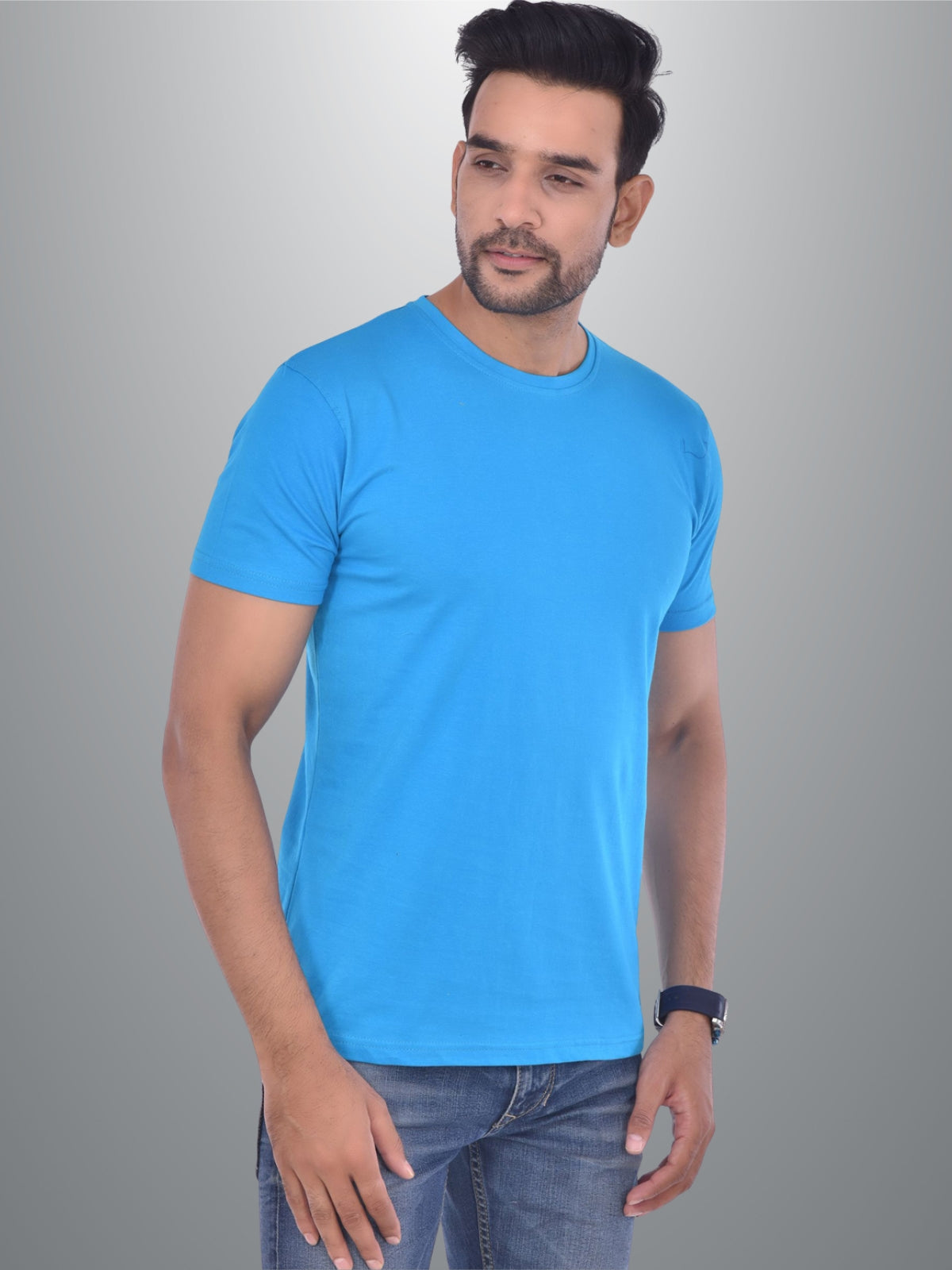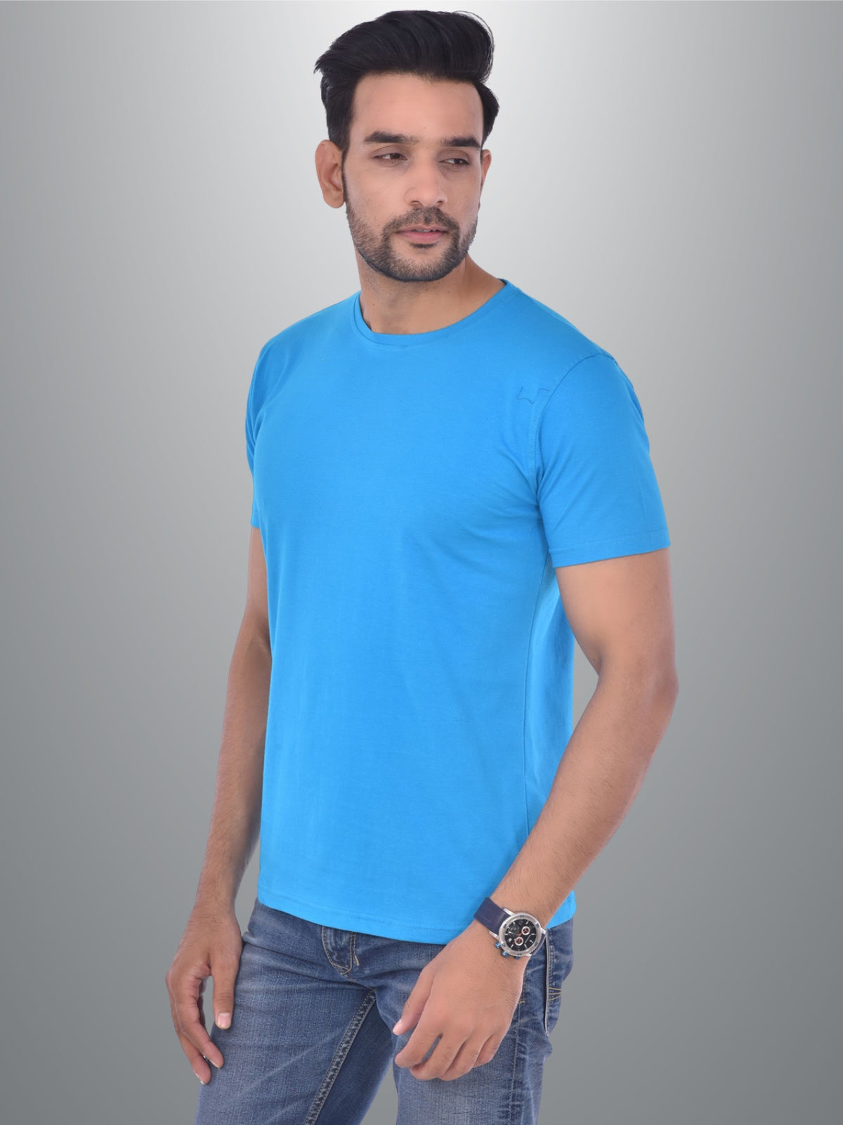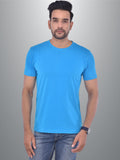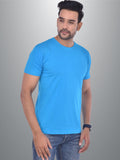 Mens Solid Round Neck Half Sleeve Cotton Blend Sky Blue T-shirt