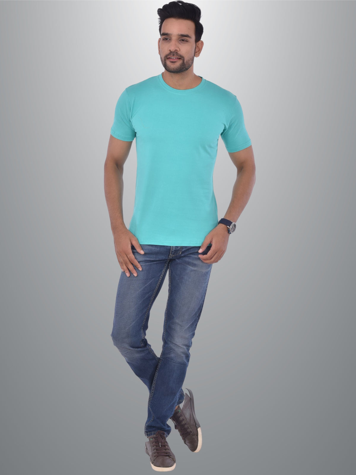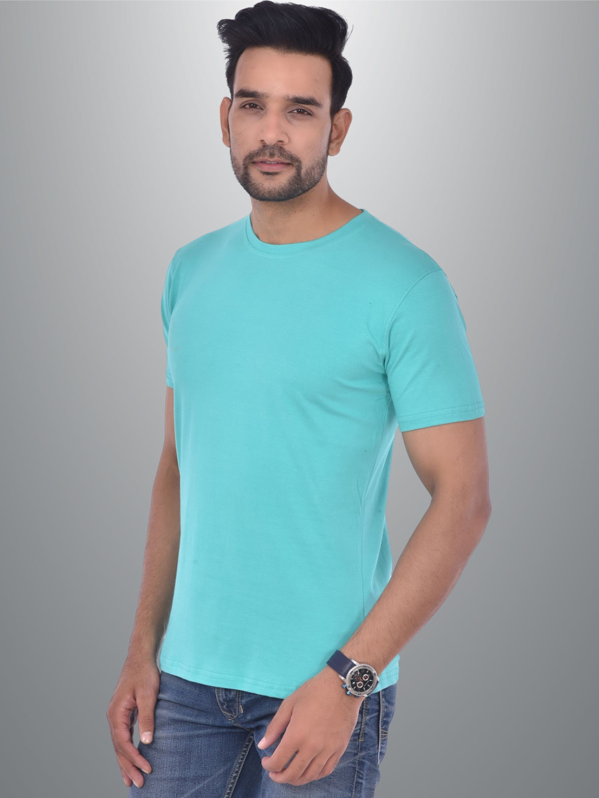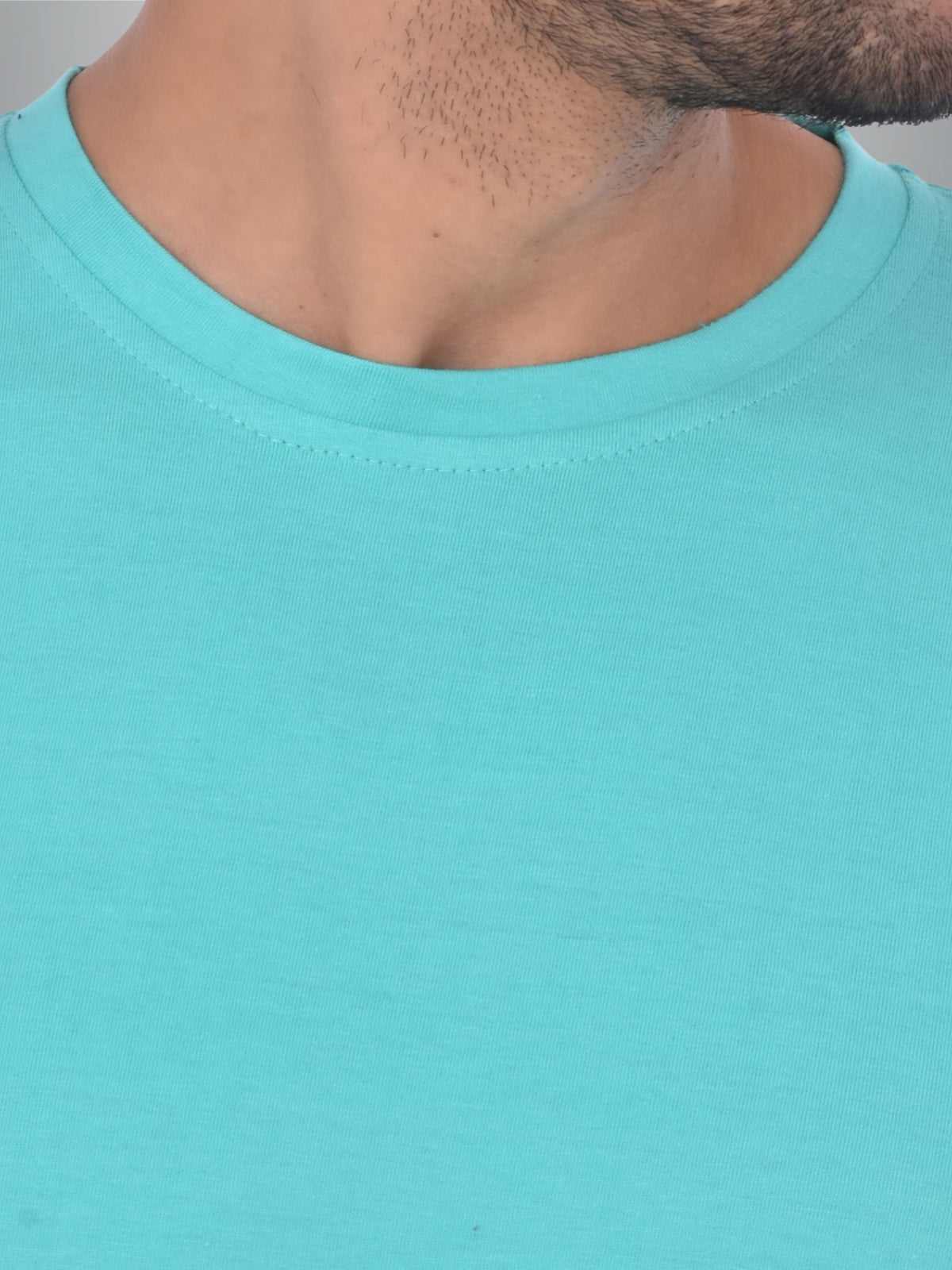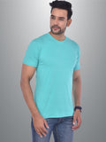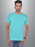 Mens Solid Round Neck Half Sleeve Cotton Blend Turquoise T-shirt
