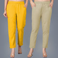 Pack Of 2 Womens Regular Fit Mustard And Beige Fully Elastic Waistband Cotton Trouser