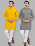 Mens Solid Mustard And Grey Cotton Long Kurta Combo