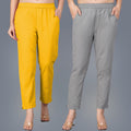 Pack Of 2 Womens Regular Fit Mustard And Grey Fully Elastic Waistband Cotton Trouser