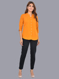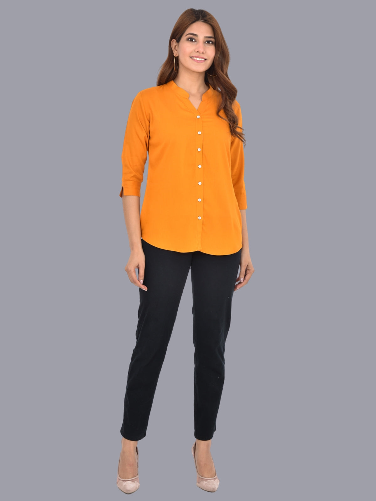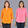 Pack Of 2 Womens Solid Mustard and Pink Rayon Chinese Collar Shirts Combo