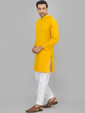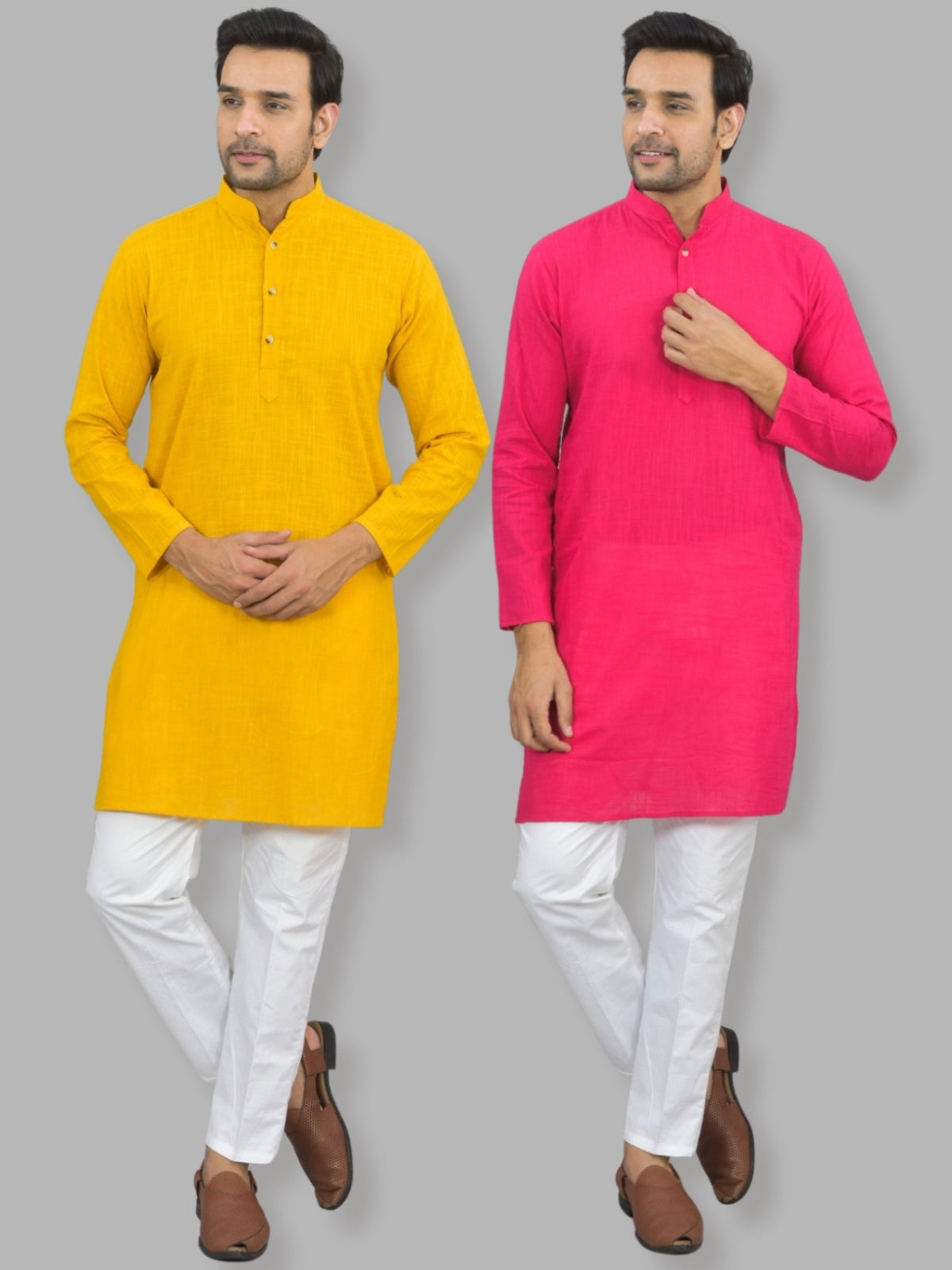 Mens Solid Mustard And Rani Cotton Long Kurta Combo