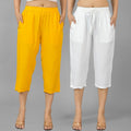 Pack Of 2 Womens Mustard And White Calf Length Rayon Culottes Trouser Combo