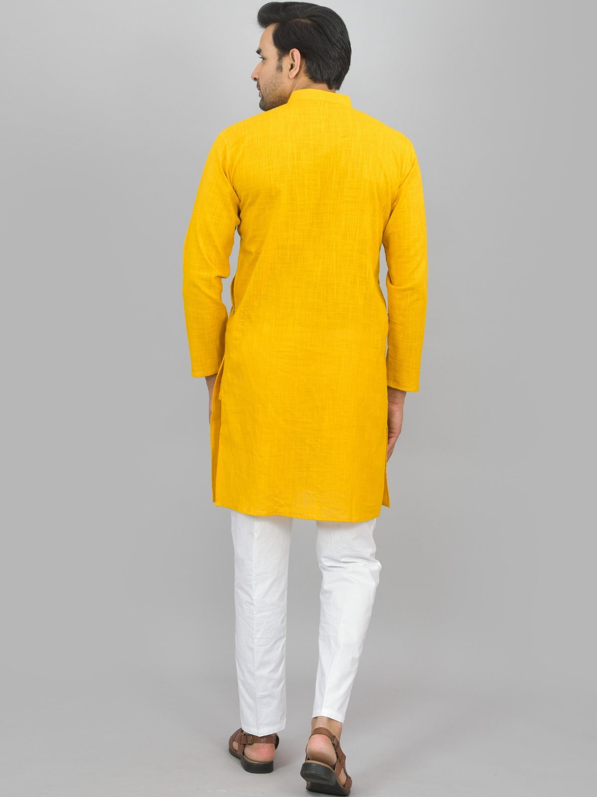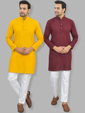 Mens Solid Mustard And Wine Cotton Long Kurta Combo
