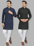 Mens Solid Navy Blue And Black Cotton Long Kurta Combo