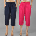 Pack Of 2 Womens Navy Blue And Rani Pink Calf Length Rayon Culottes Trouser Combo